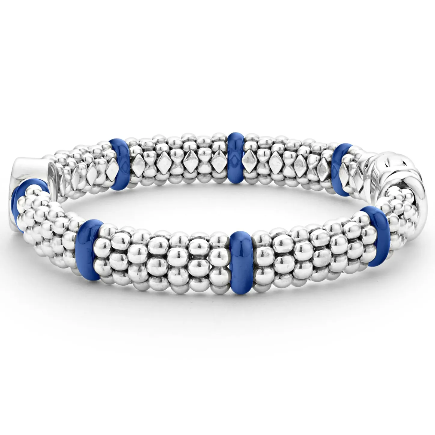Smooth Ultramarine Ceramic & Diamonds In A Circle Motif With Caviar Beading Forms This Timeless Bracelet. Lagos Diamonds Are The Highest Quality Natural Stones.