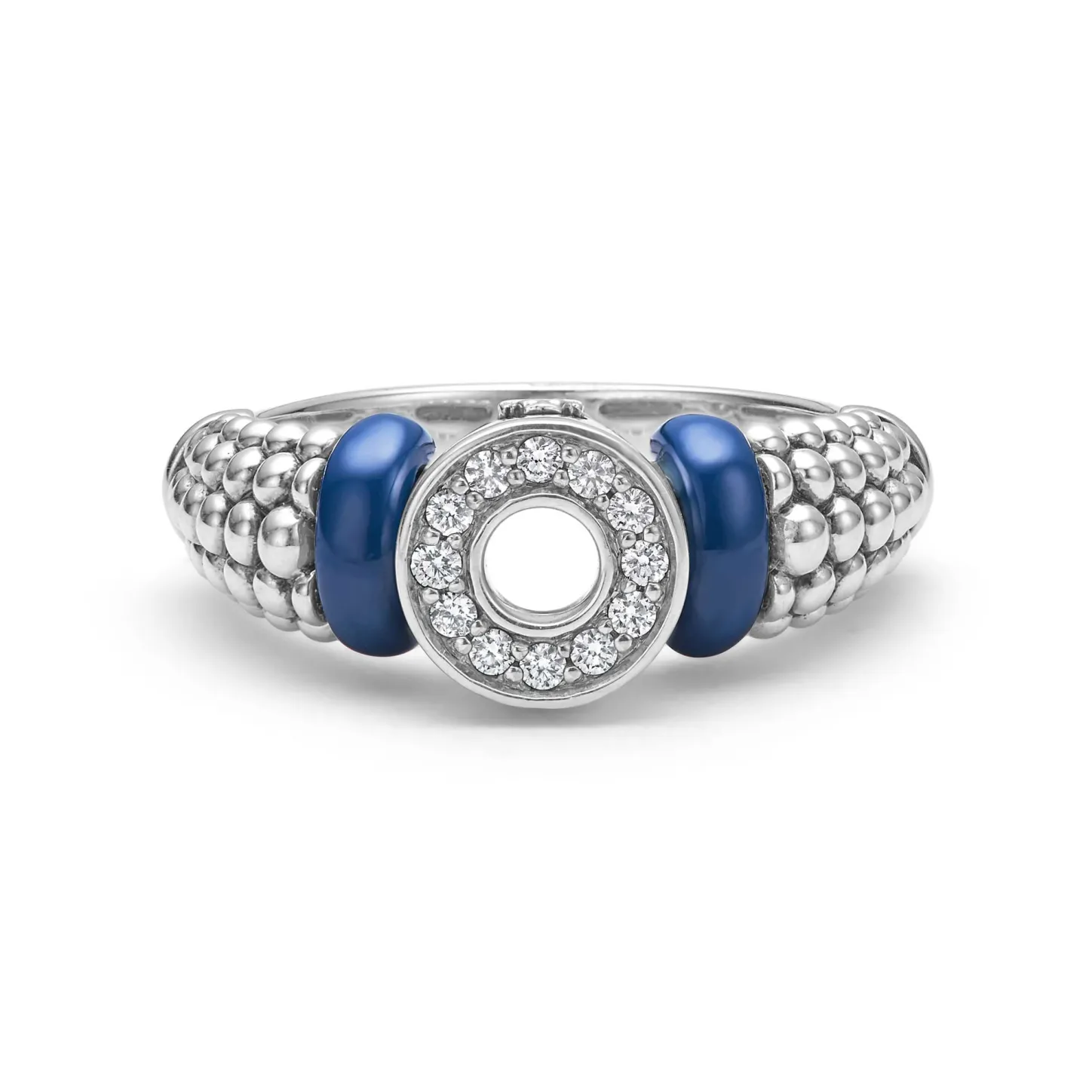 Signature Ultramarine Ceramic & Diamonds In A Circle Motif With Caviar Beading Form This Timeless Ring. Lagos Diamonds Are The Highest Quality Natural Stones.