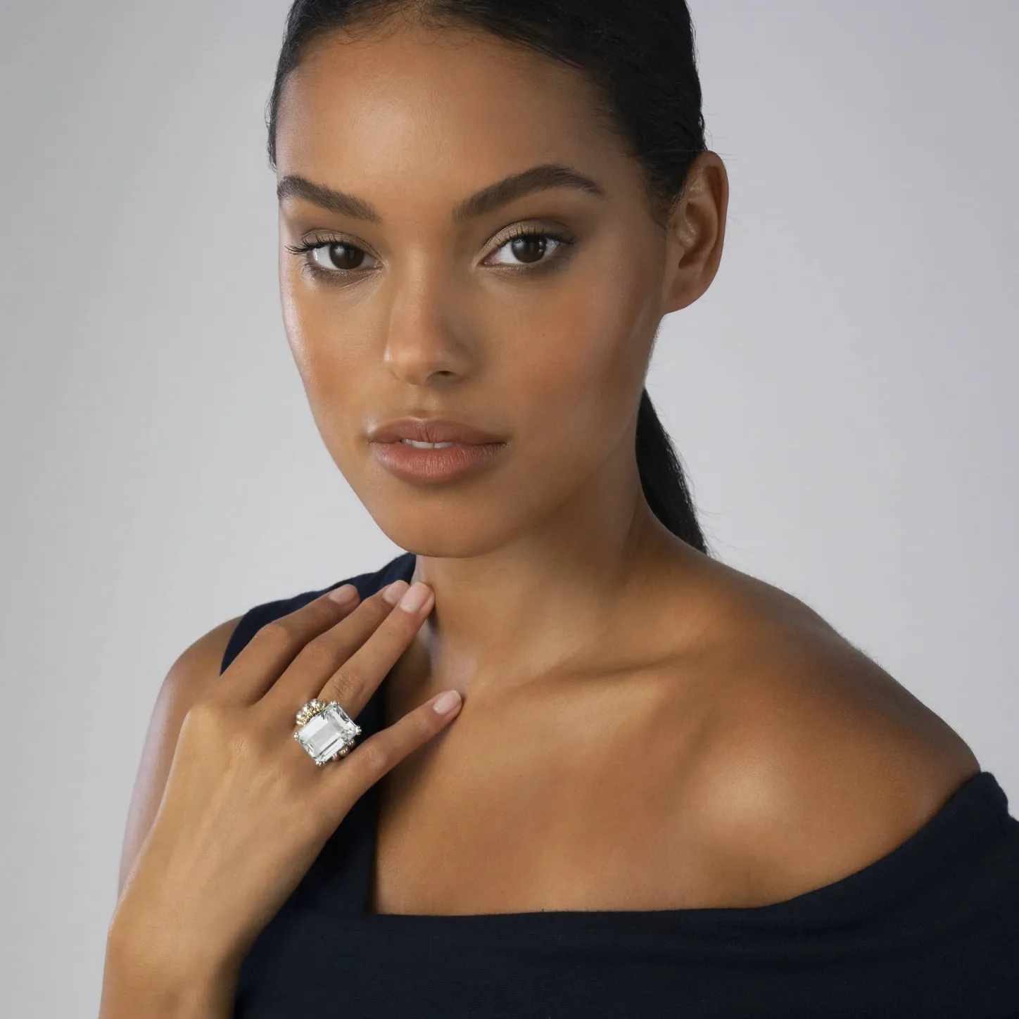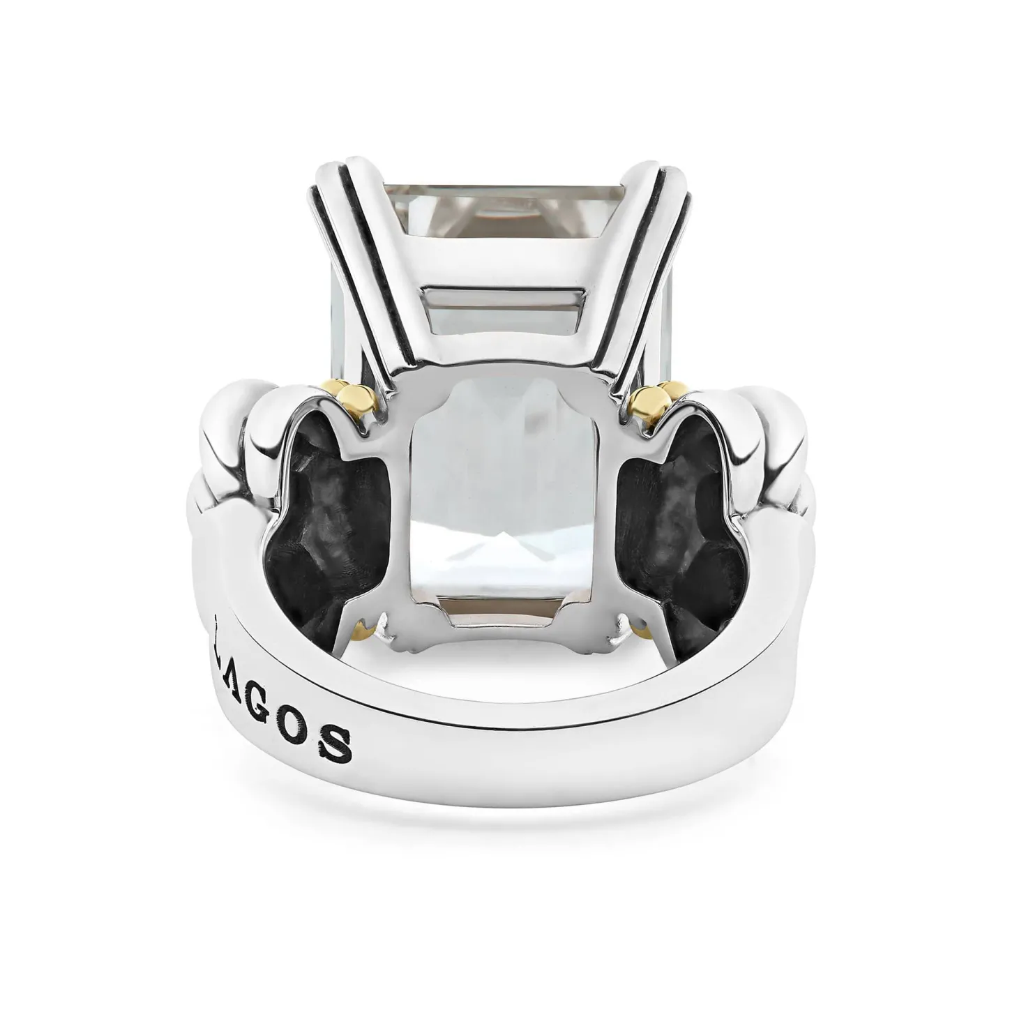 The Return Of A Lagos Icon. Our Signature Emerald-Cut White Topaz Gemstone Ring With A Prong Setting In Sterling Silver And 18K Gold Caviar Beading.