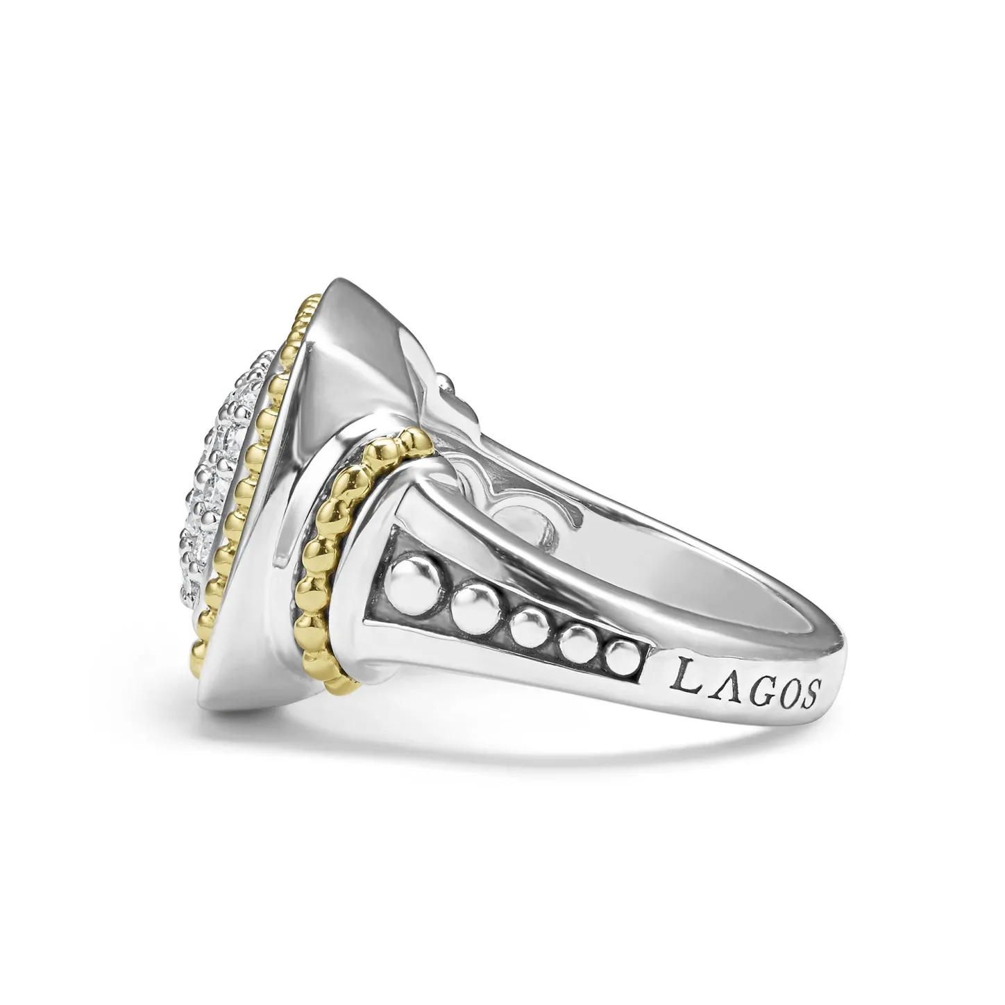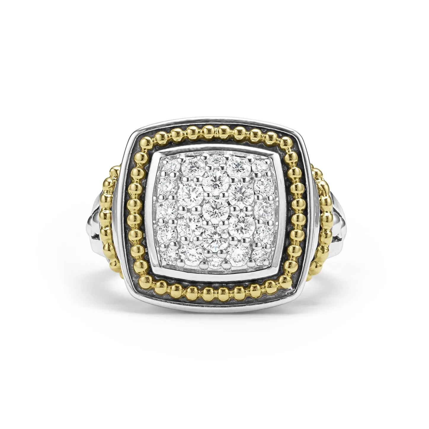 A Lagos Exclusive. Diamonds And 18K Gold Caviar Beading Form This Statement Ring. Lagos Diamonds Are The Highest Quality Natural Stones.