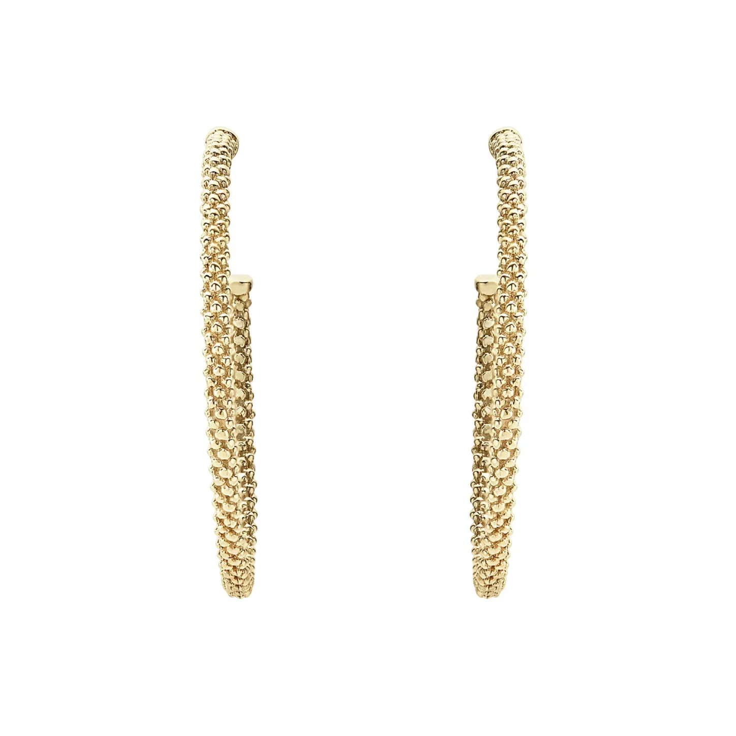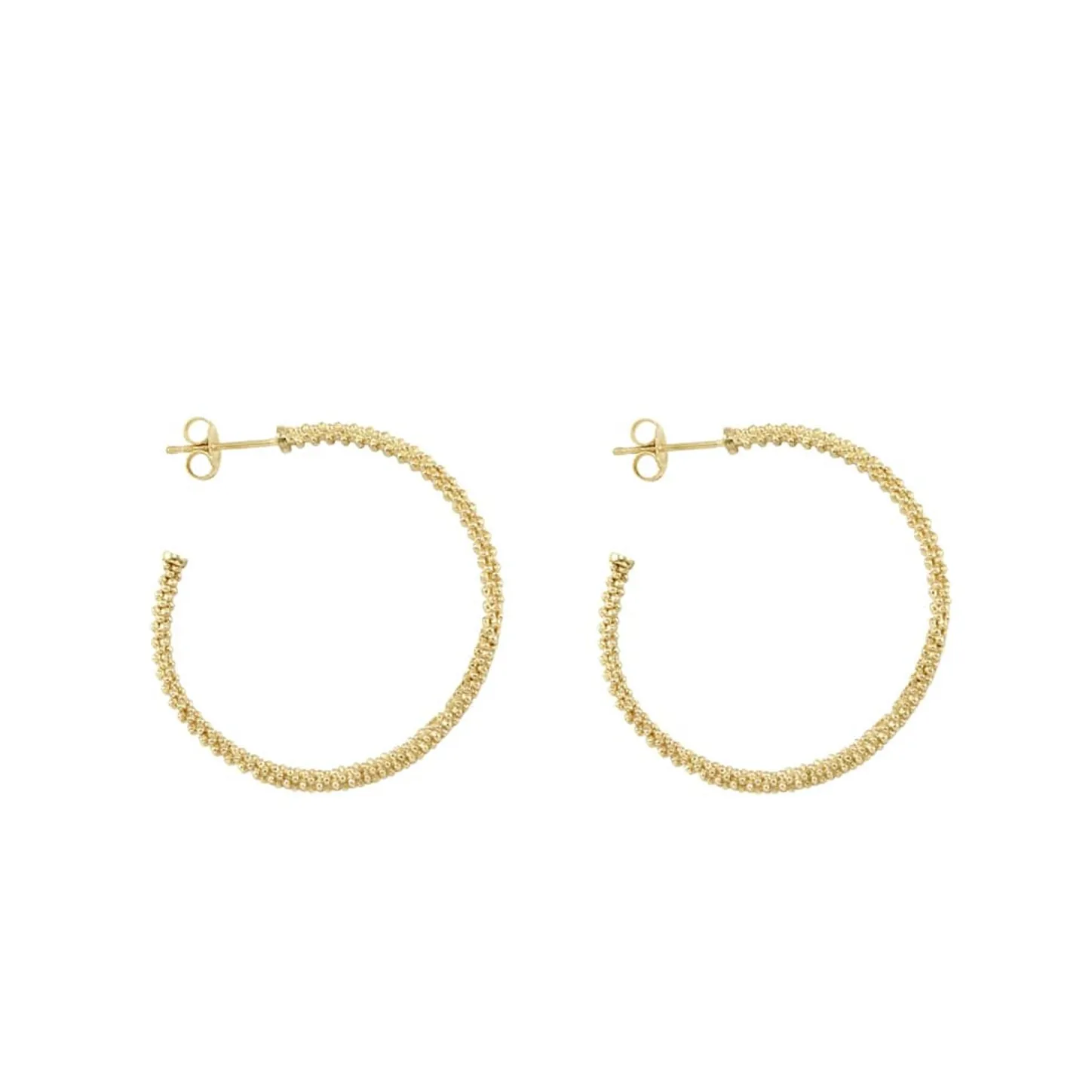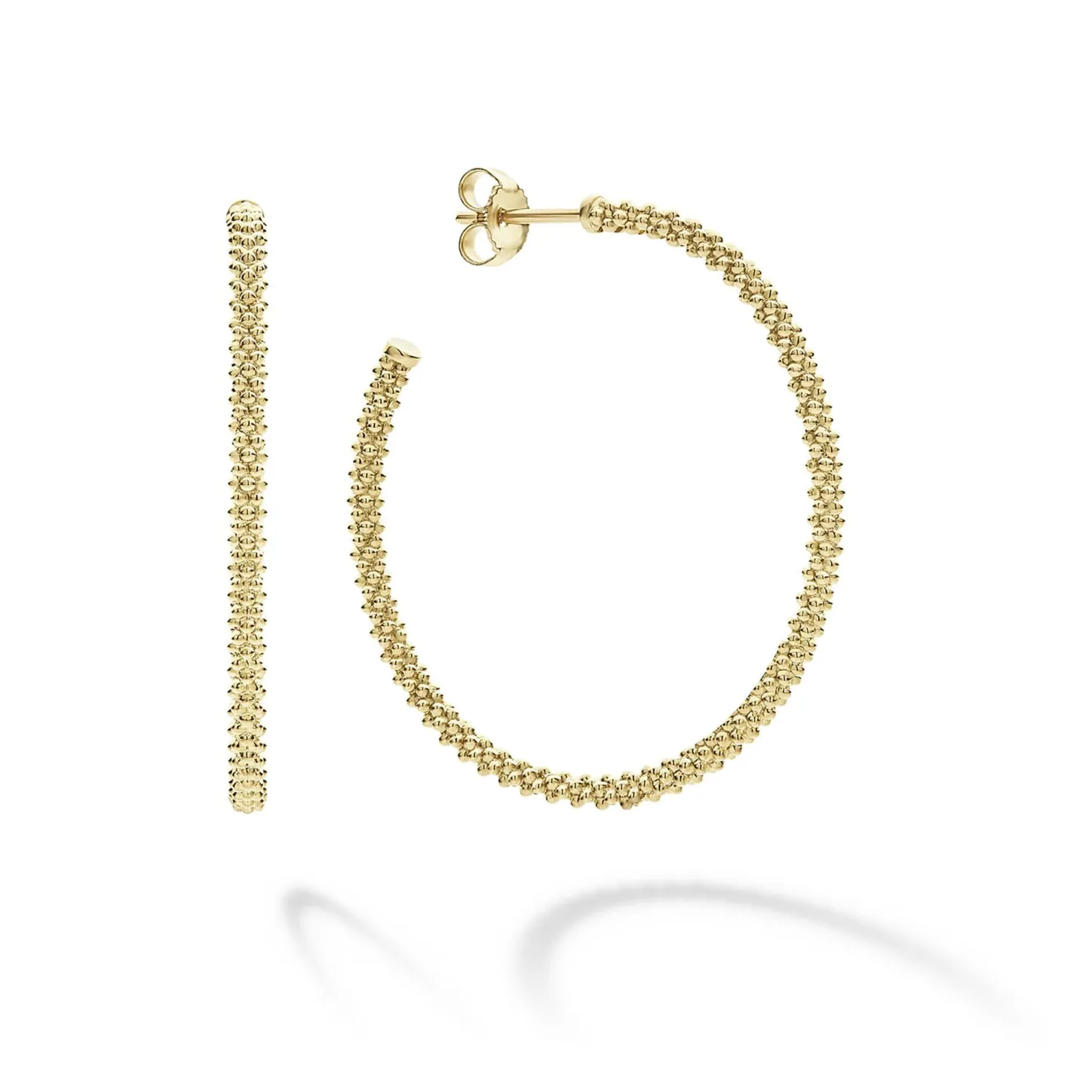 Beautifully Detailed 18K Gold Caviar Beaded Hoop Earrings To Complete Any Look.