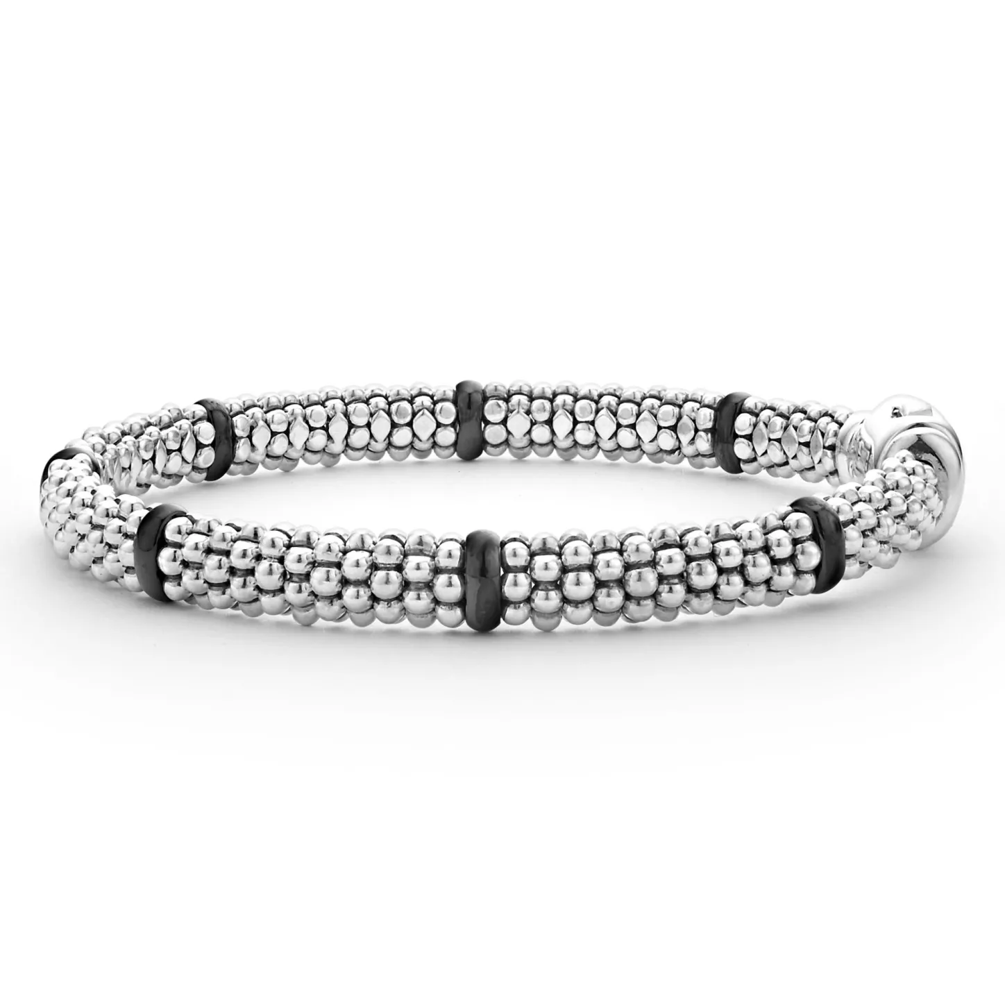 Seven Smooth Black Ceramic Stations Highlight Sterling Silver Caviar Beading On This Signature Bracelet.