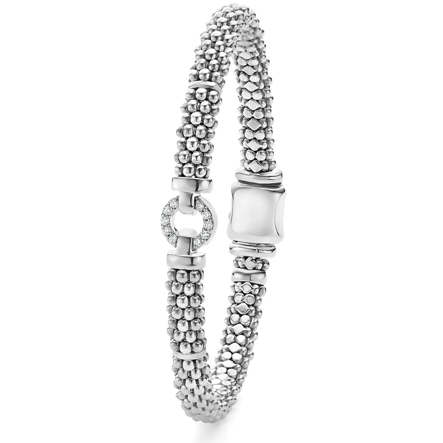 A Single Diamond Circle Accents This Signature Caviar Beaded Bracelet. Lagos Diamonds Are The Highest Quality Natural Stones.