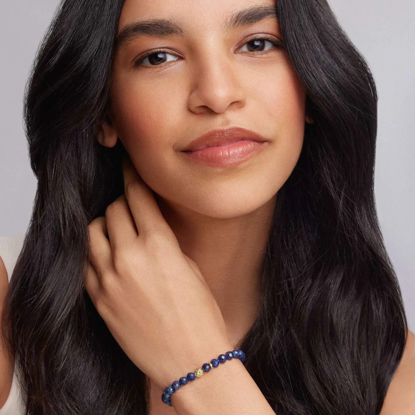 Lapis Gemstone Bracelet With An 18K Gold Caviar Beaded Station That Is Ideal To Style With Various Bracelets For A Unique Look.