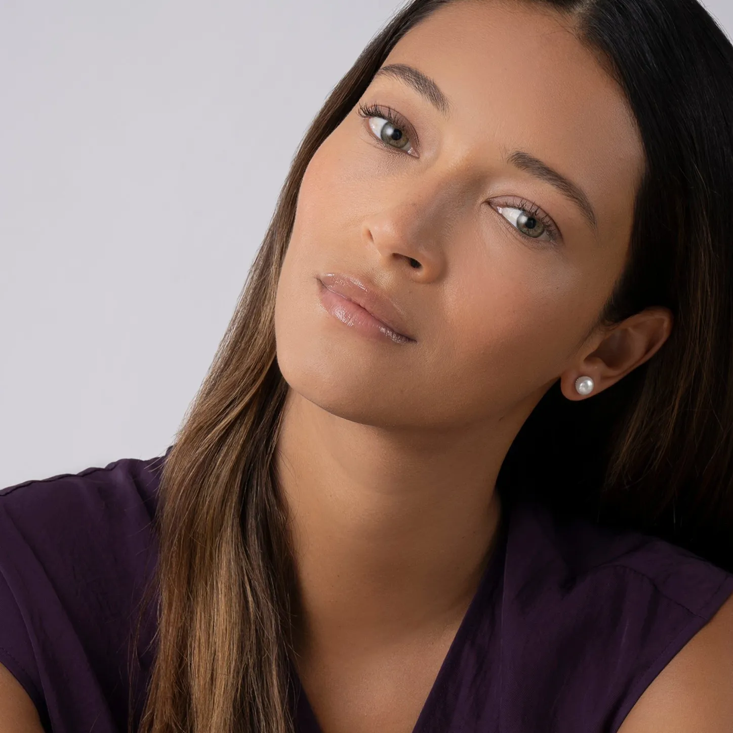 The Ideal Gift. Sophisticated Cultured Freshwater Pearl Earrings Framed By Flutes Of Sterling Silver.