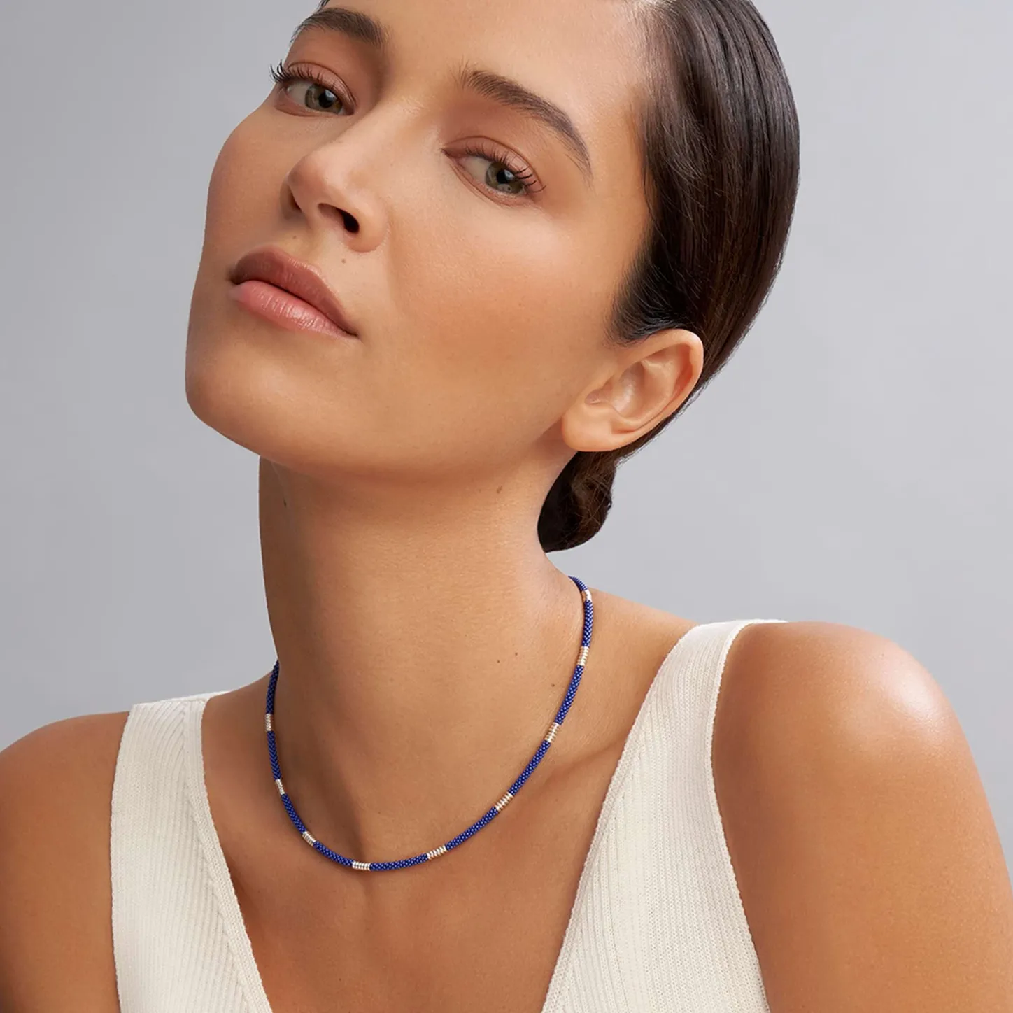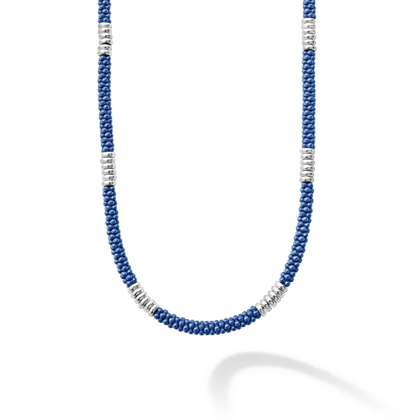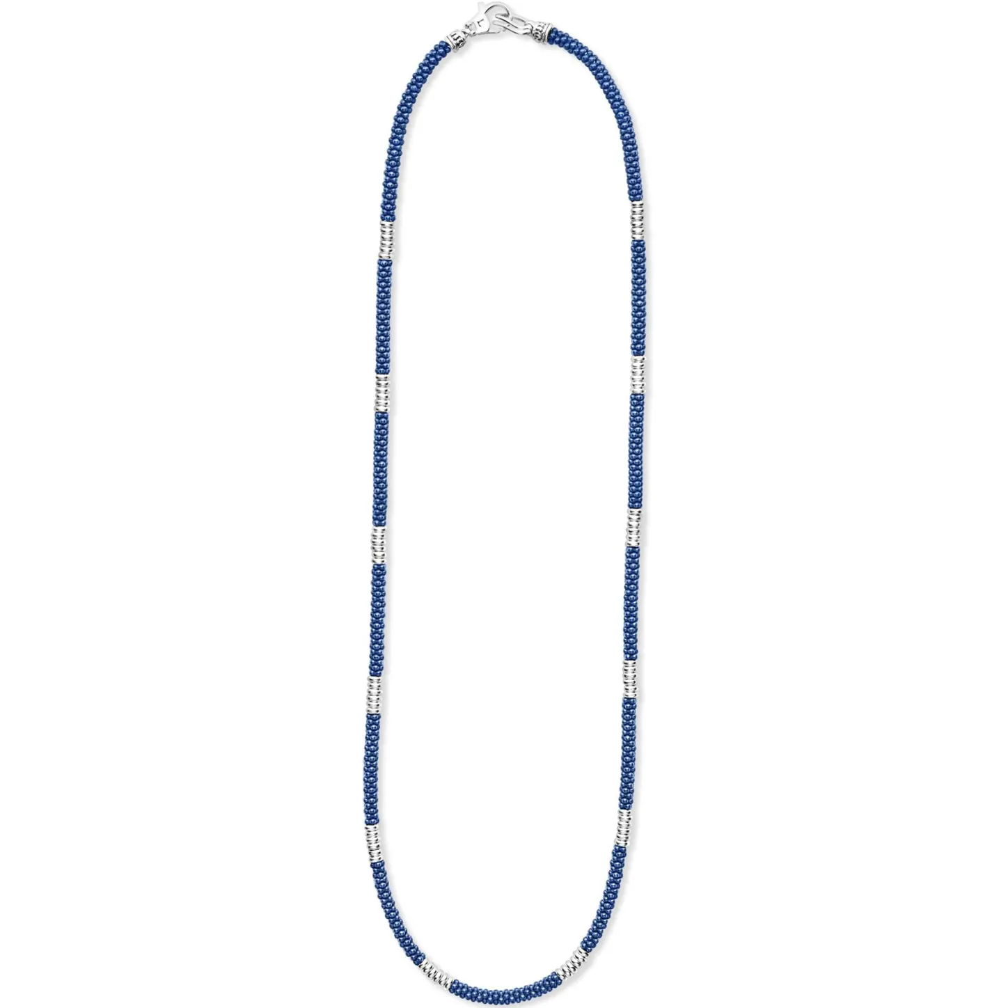 An Ultramarine Ceramic And Sterling Silver Caviar Beaded Necklace That Is Finished With Signature Lobster Clasp.