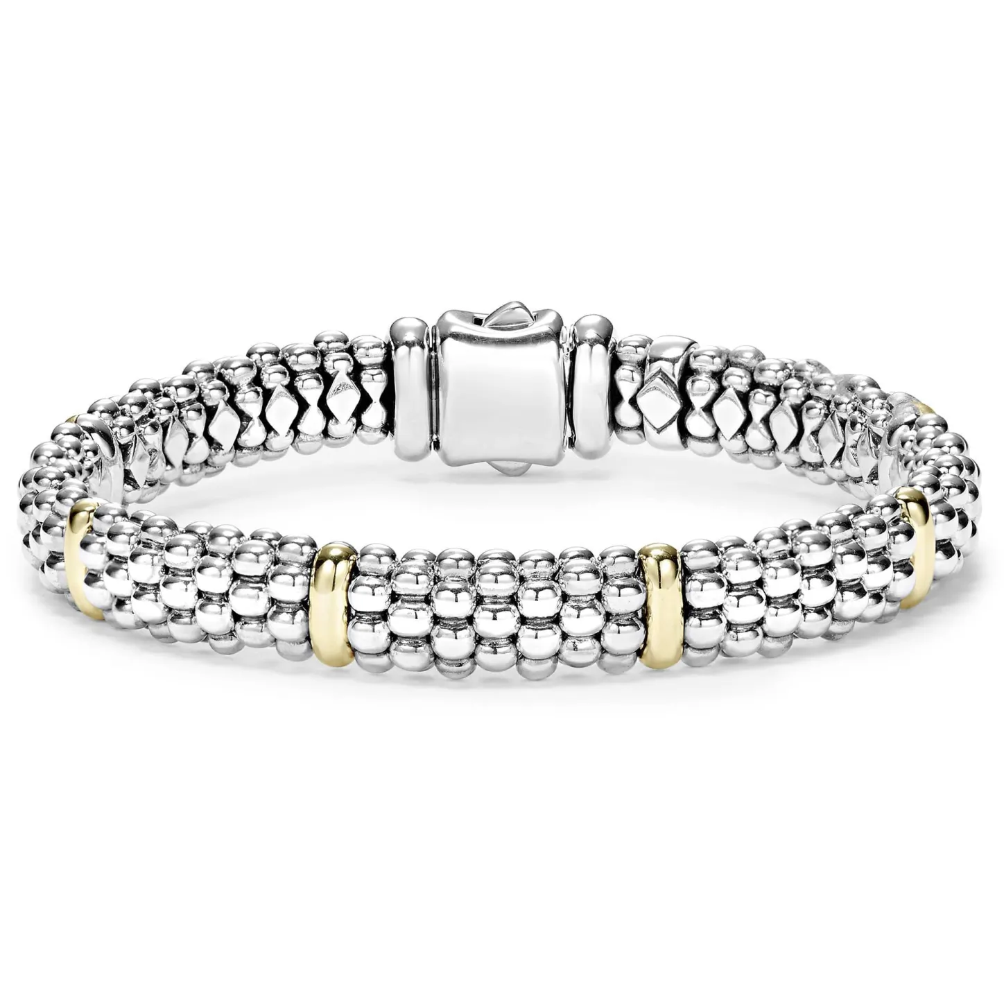 Our Classic Sterling Silver Caviar Bracelet With Six 18K Gold Stations.