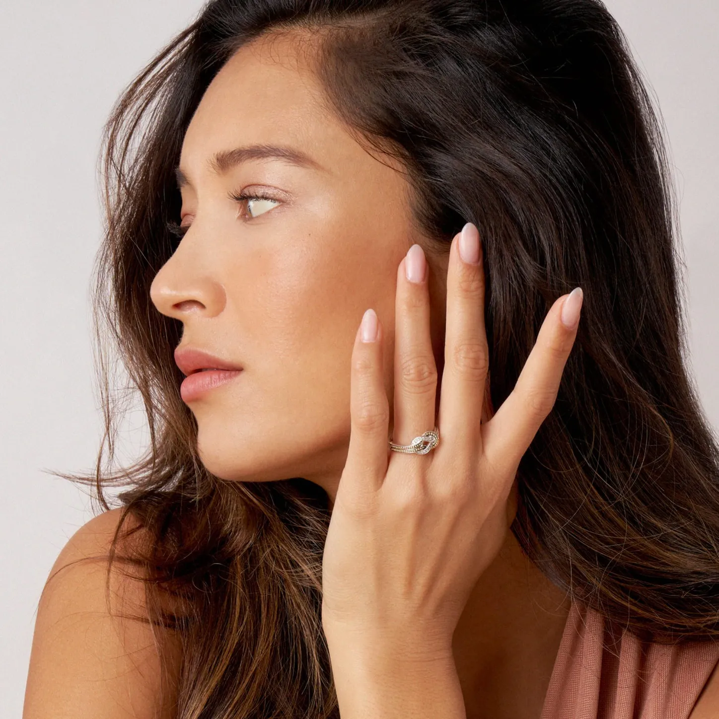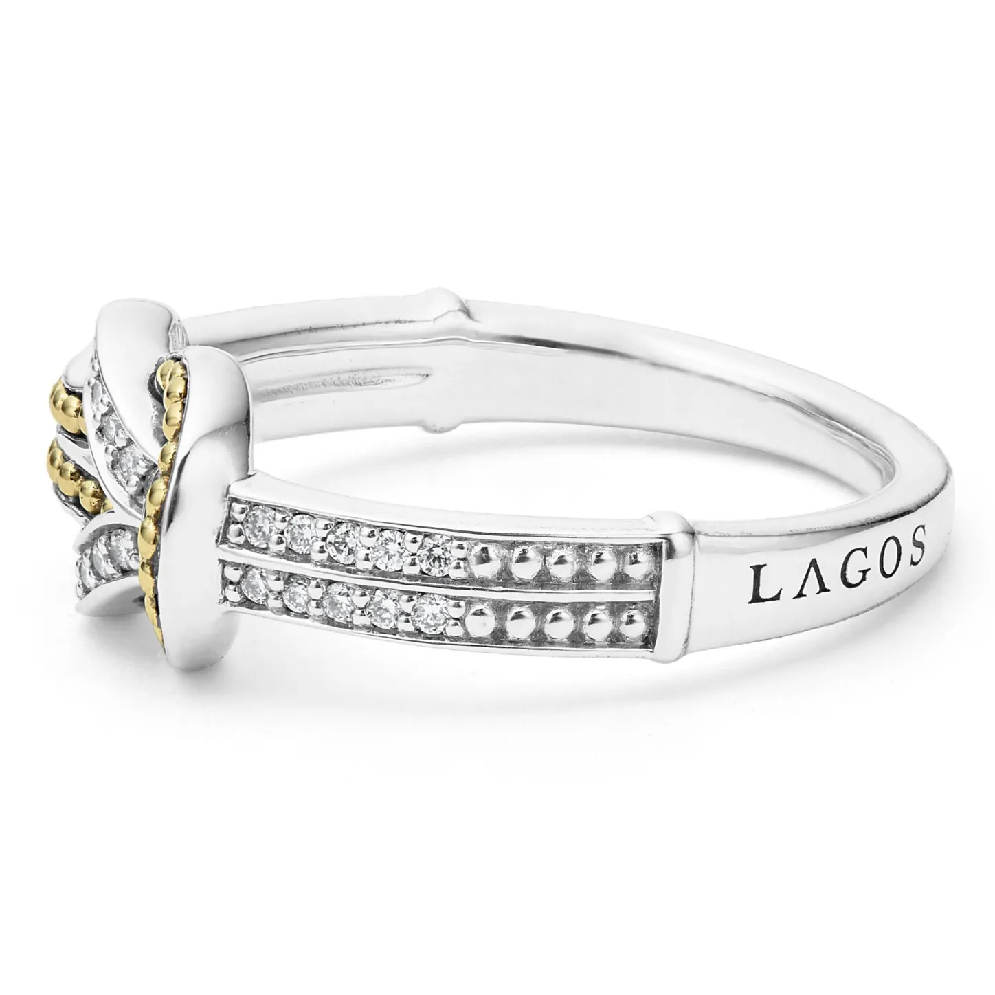 Diamonds And 18K Gold Woven In A Knot Motif Form This Unique Newport Ring. Lagos Diamonds Are The Highest Quality Natural Stones.