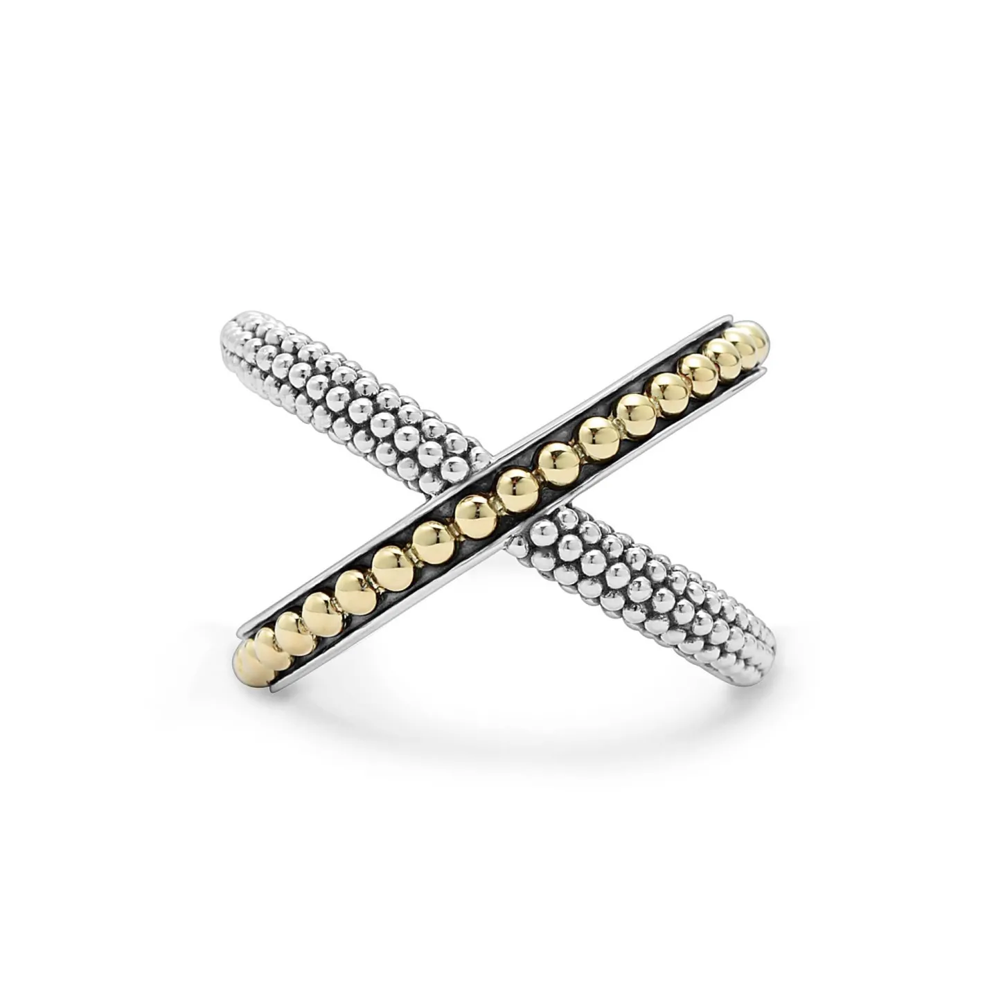 18K Gold And Our Classic Sterling Silver Caviar Beading Wrap Around Forming This Elegant X Ring.