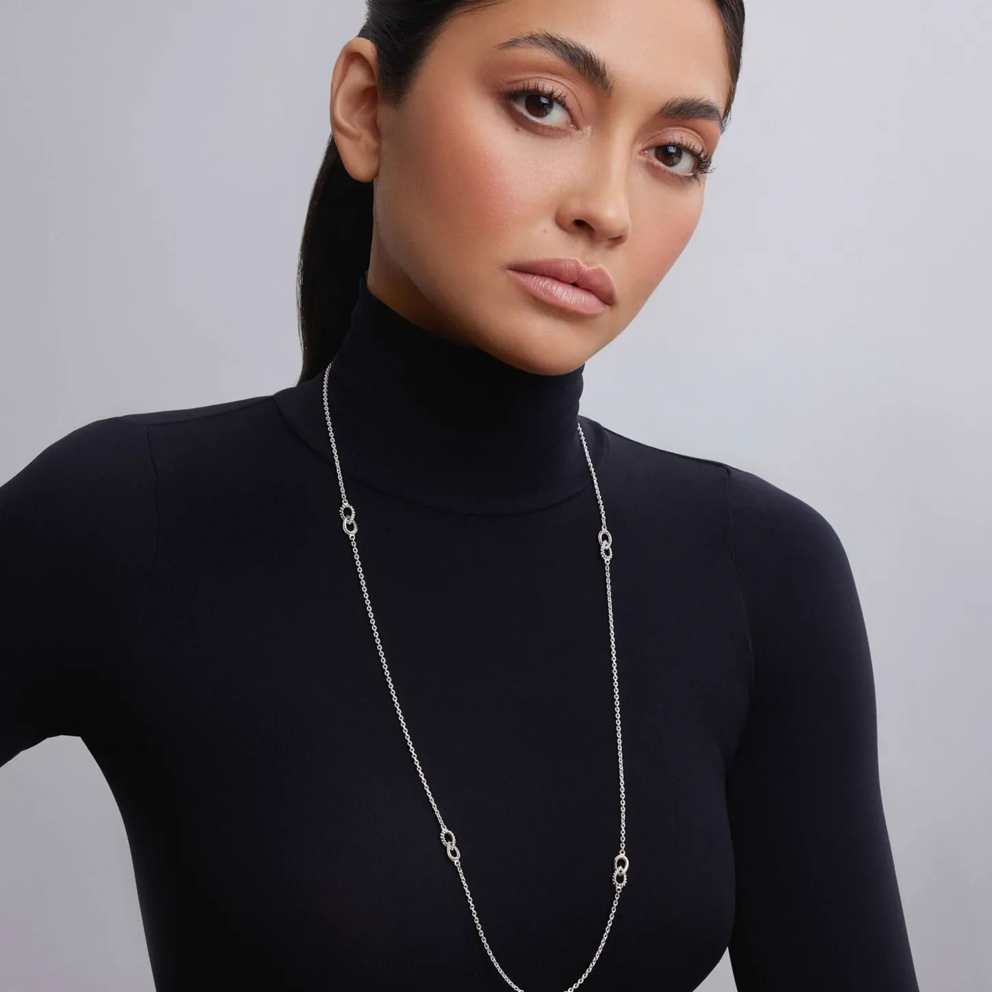 Four Sterling Silver Fluted Link Stations Finished On A Chain Necklace.