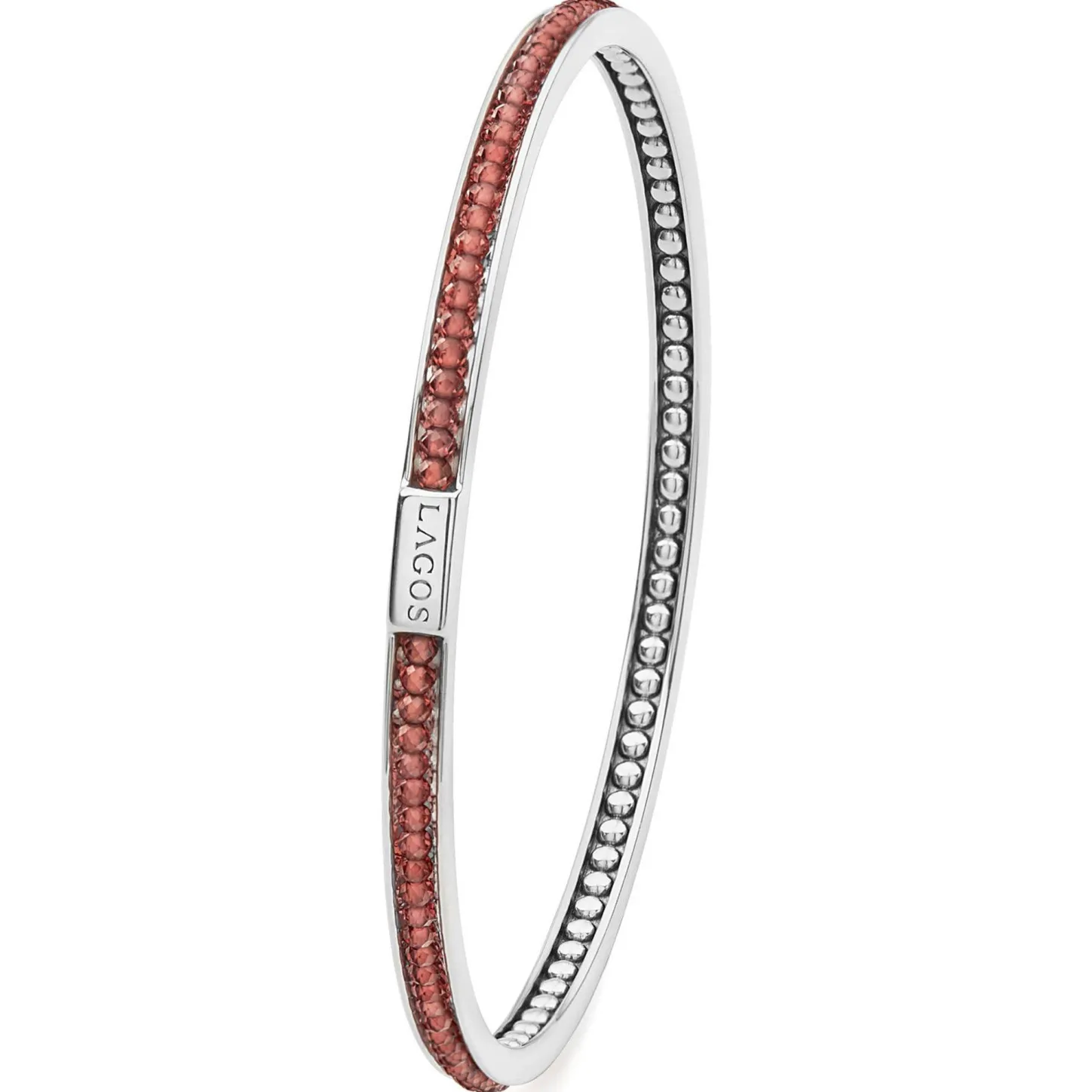 Garnet Gemstones Set With Smoothly Polished Sterling Silver Forms This Round Bangle Detailing The Lagos Logo.