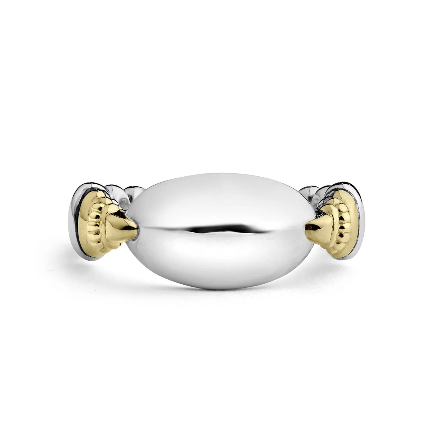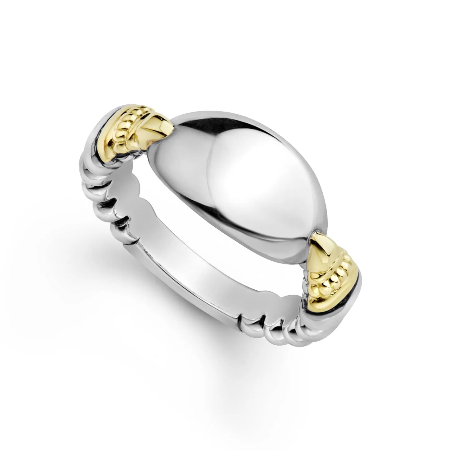 Highly Polished Sterling Silver Ring With 18K Gold Beading. Ideal For A Modern Initial Or Classic Monogram.