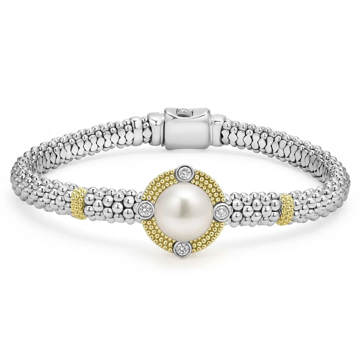 Store Pearl Diamond Caviar Bracelet | 6Mm Two-Tone