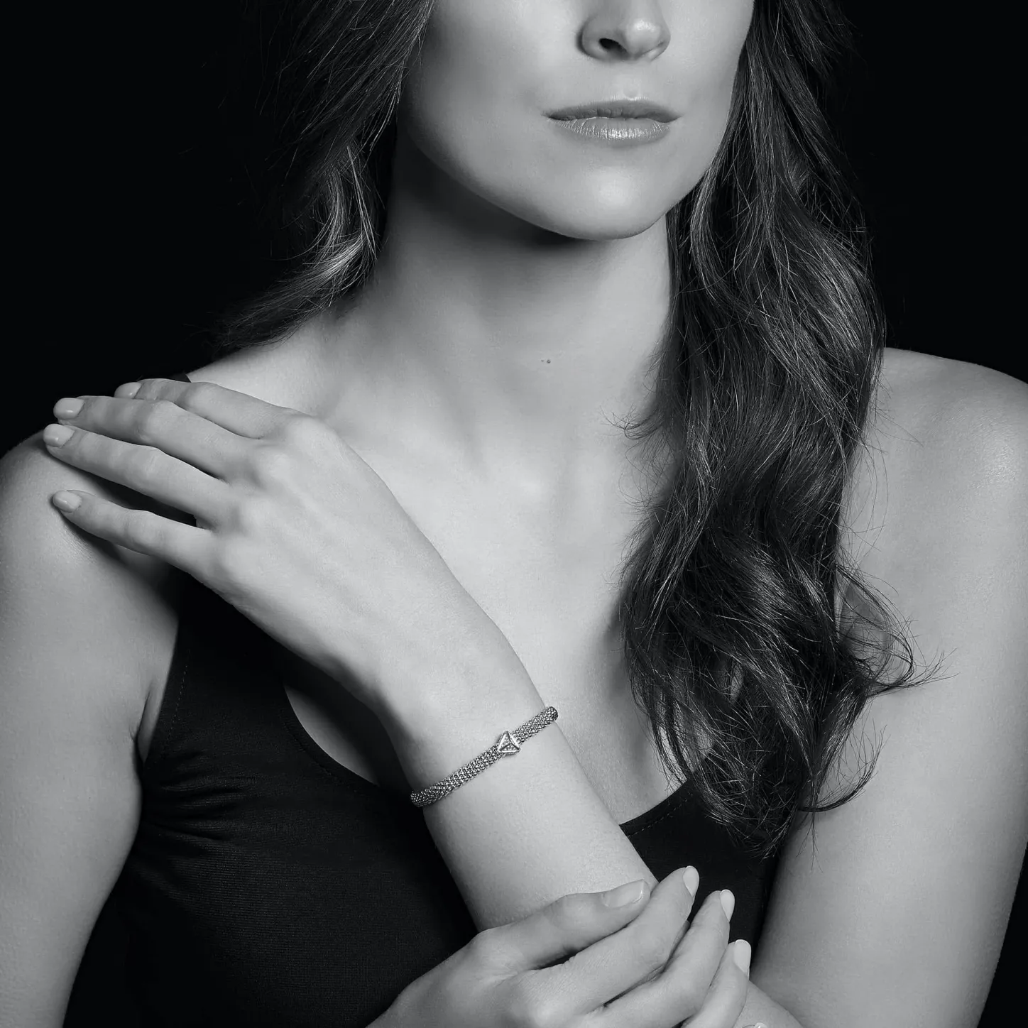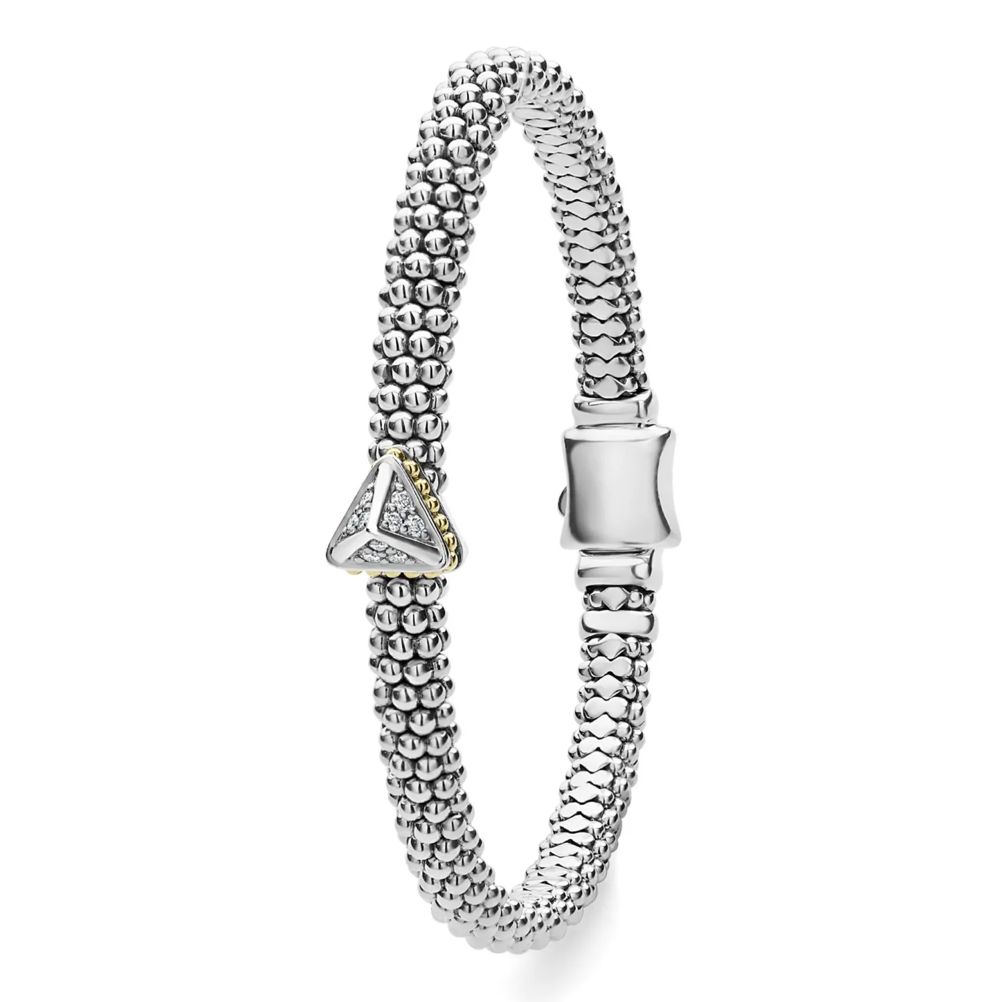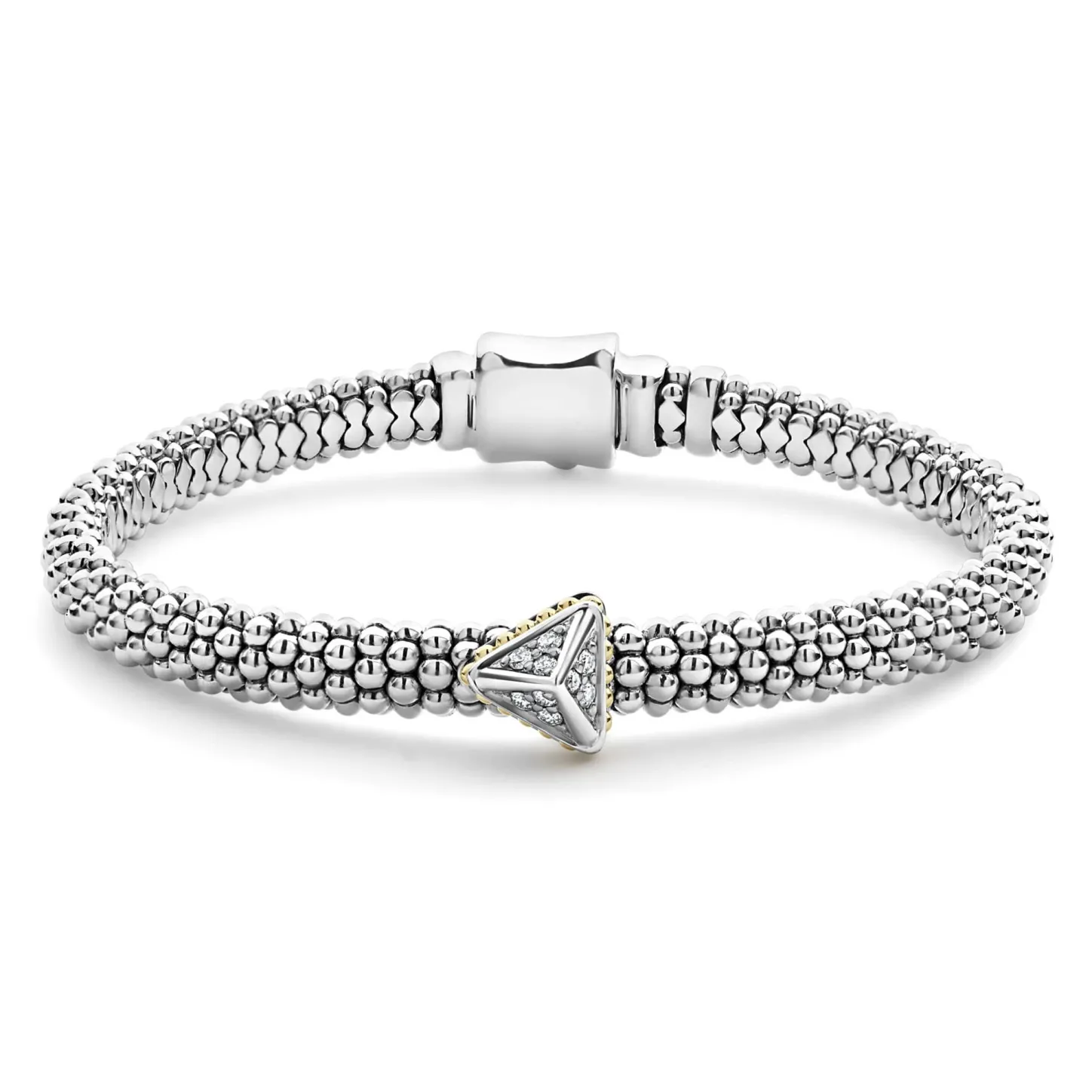 A Single Diamond Pyramid With 18K Gold Detailing Accents This Sterling Silver Caviar Beaded Bracelet. Lagos Diamonds Are The Highest Quality Natural Stones.