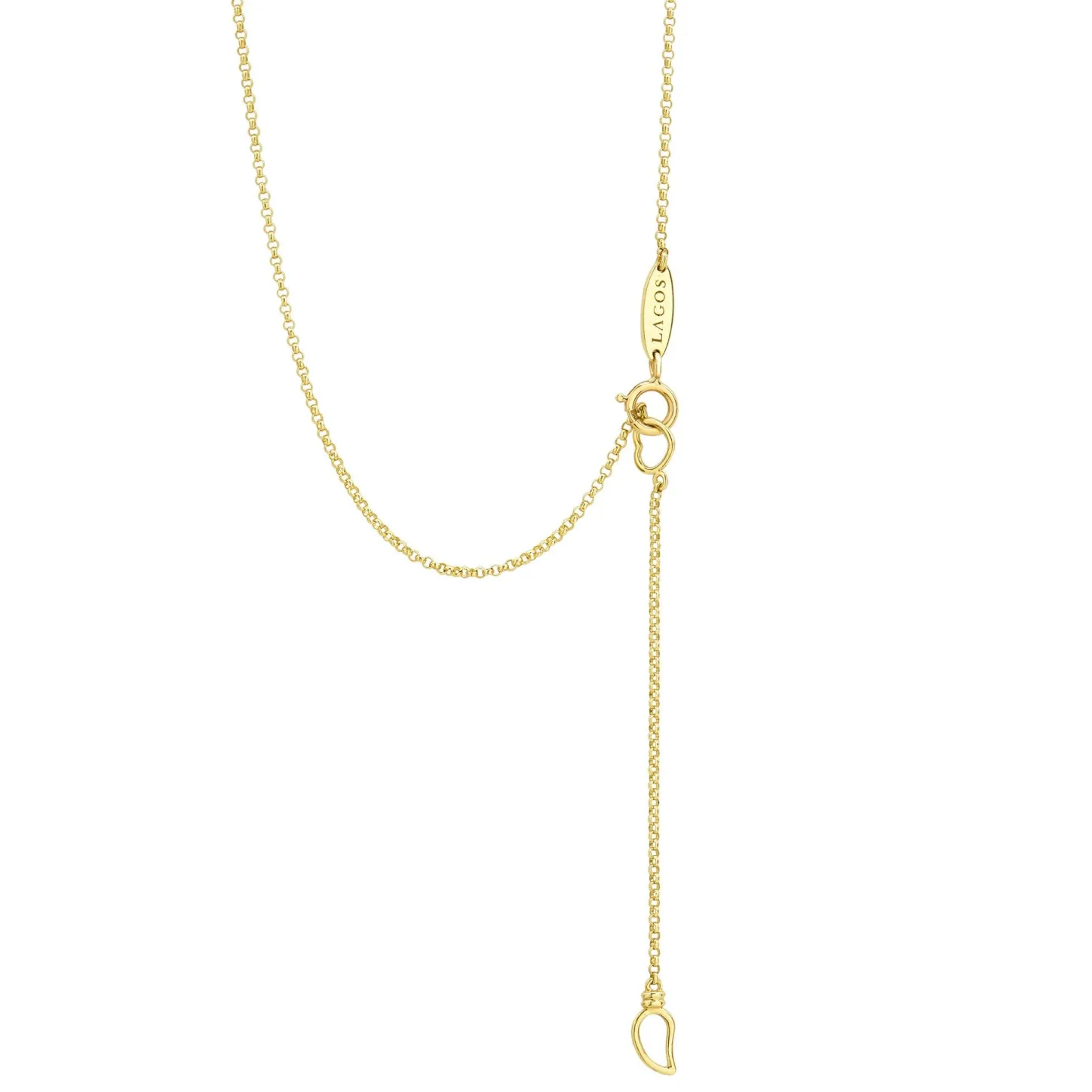 A Lagos.Com Exclusive. 18K Gold Caviar Beaded Circle Pendant Accented With A Brilliant Diamond Finished On An 18K Gold Chain. Perfect For Engraving With An Initial Or Symbol!