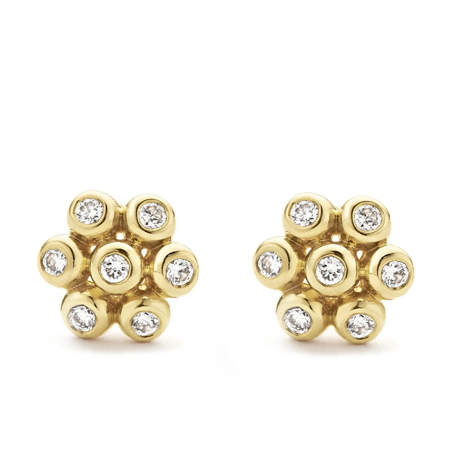 Diamonds And 18K Gold Form These Petite Flower Stud Earrings. Lagos Diamonds Are The Highest Quality Natural Stones.