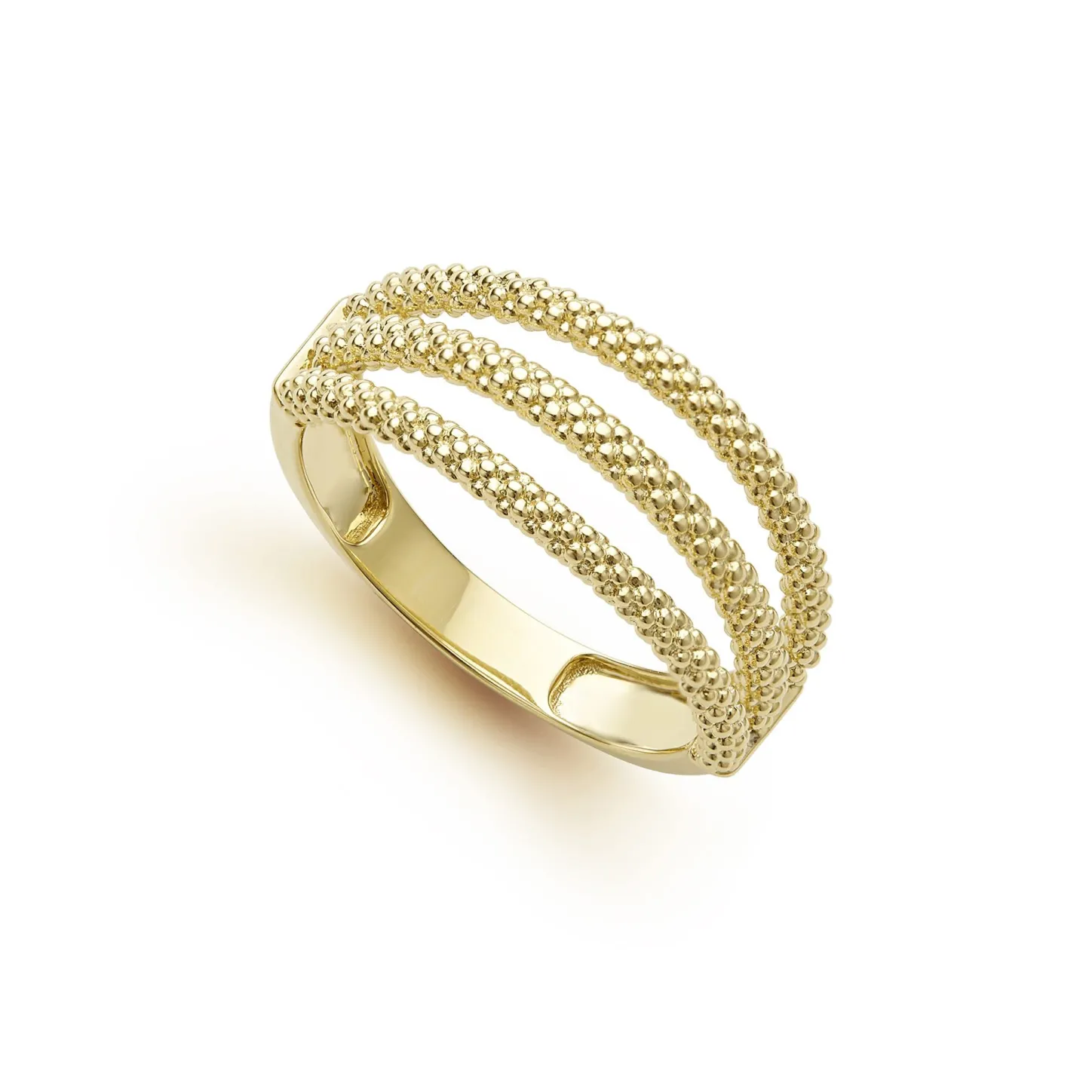 Three Rows Of 18K Gold Superfine Caviar Beading Form This Ring That Is Perfect To Elevate Every Look.