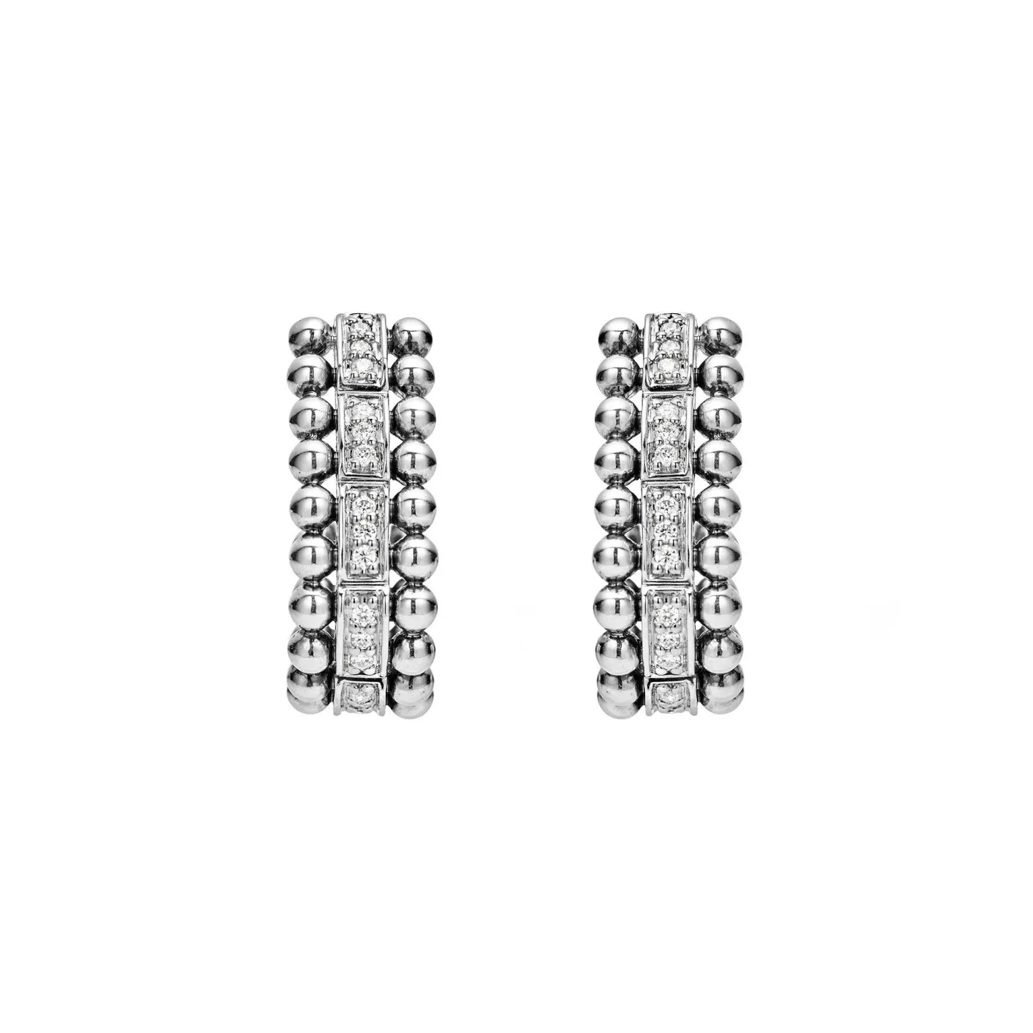 Diamond Hoop Earrings Framed By Sterling Silver Caviar Beading. Lagos Diamonds Are The Highest Quality Natural Stones.