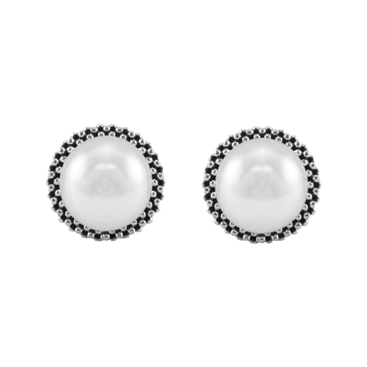Classic Pearl Stud Earrings Set In Signature Sterling Silver Caviar Beading. Just The Right Touch For Every Day.