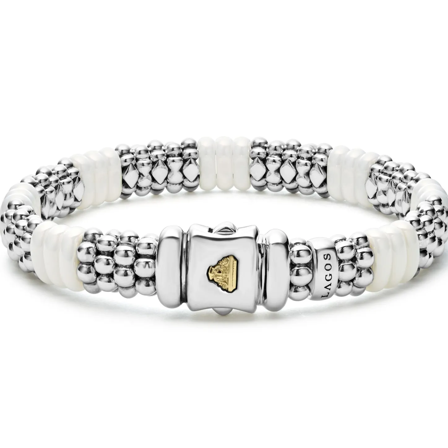 Caviar Beading In Sterling Silver And Smooth White Ceramic Form This Signature Bracelet.