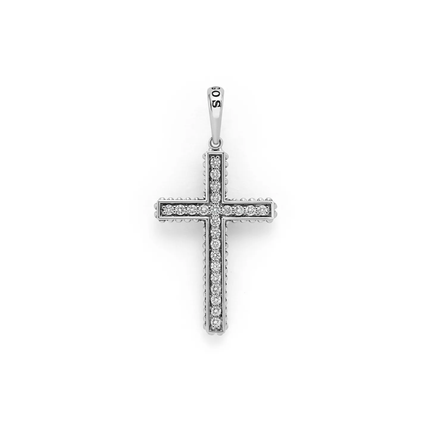 Diamonds And Sterling Silver In A Cross Motif Form This Amulet.