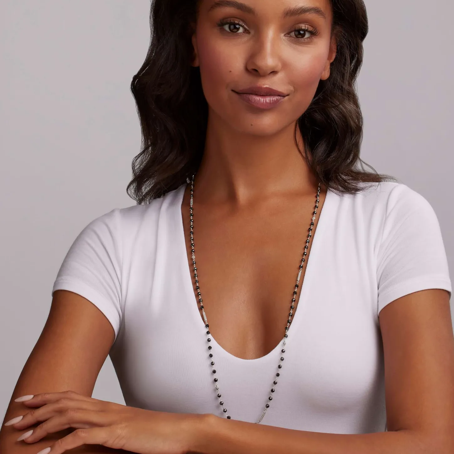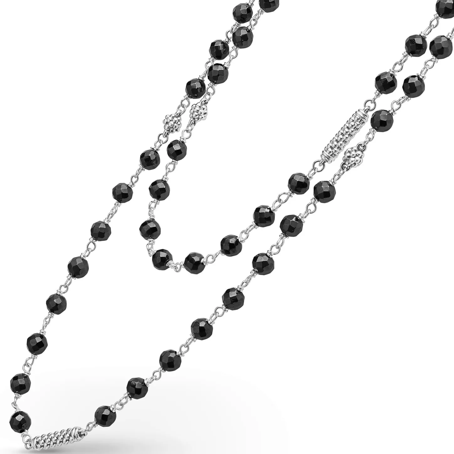 Black Ceramic And Sterling Silver Caviar Beaded Necklace Finished With A Toggle Clasp. Necklace Measures 34 Inches.