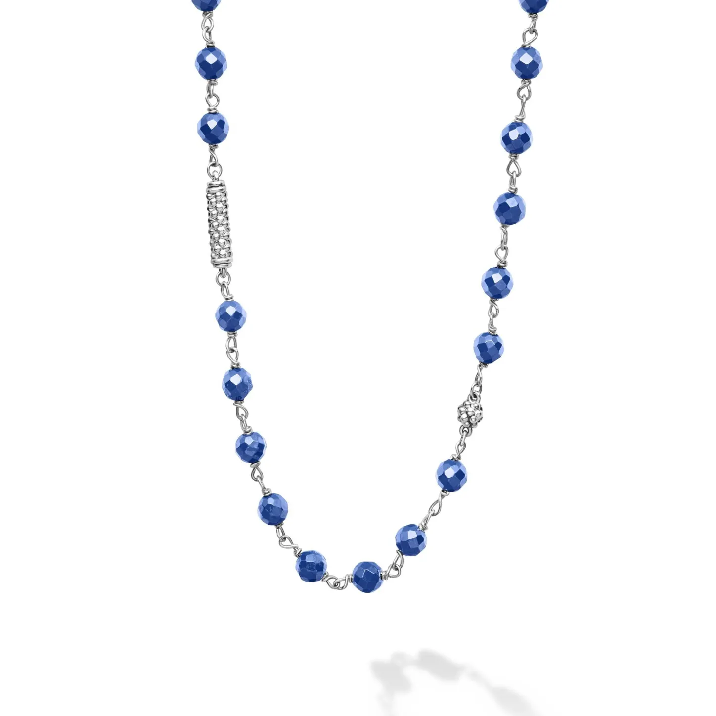 Ultramarine Ceramic And Sterling Silver Caviar Beaded Necklace Finished On A Toggle Clasp.