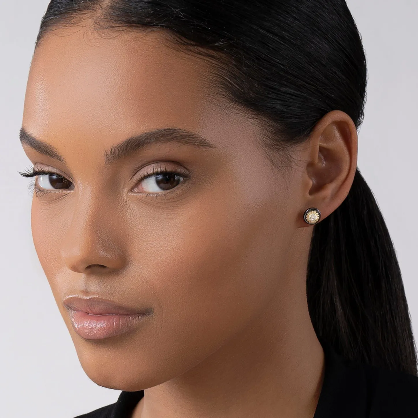 Best Sale 18K Gold And Black Ceramic Diamond Stud Earrings Gold