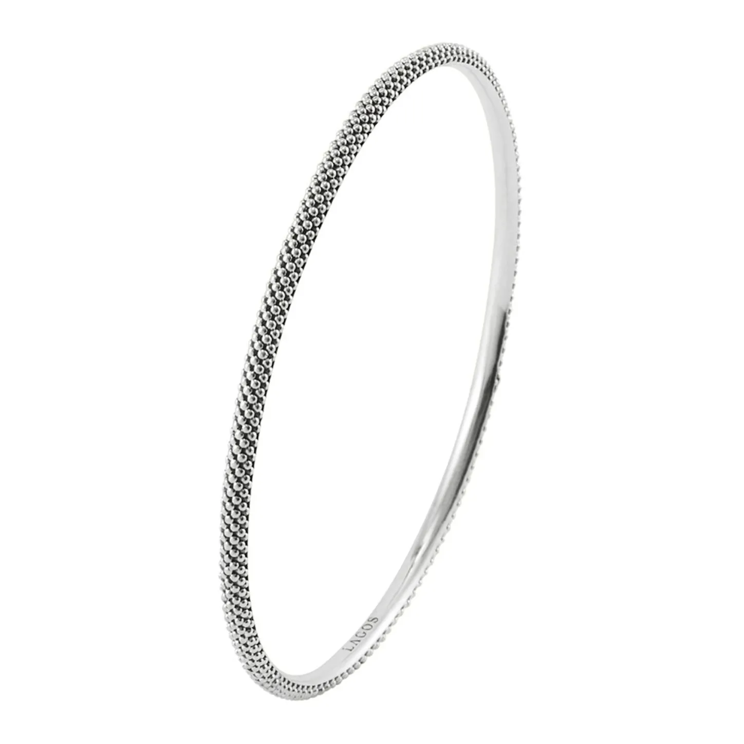 A Lagos Exclusive. These Coordinating Bangles Showcase Two Different Beadwork- The Signature Sterling Silver Caviar Beaded And A Modern Take On A Classic Design.