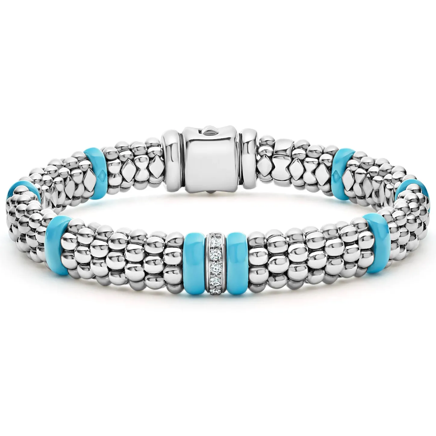 - One Diamond Blue Caviar Bracelet With Ceramic Stations And Sterling Silver Caviar Beading. Set Includes Size Medium.