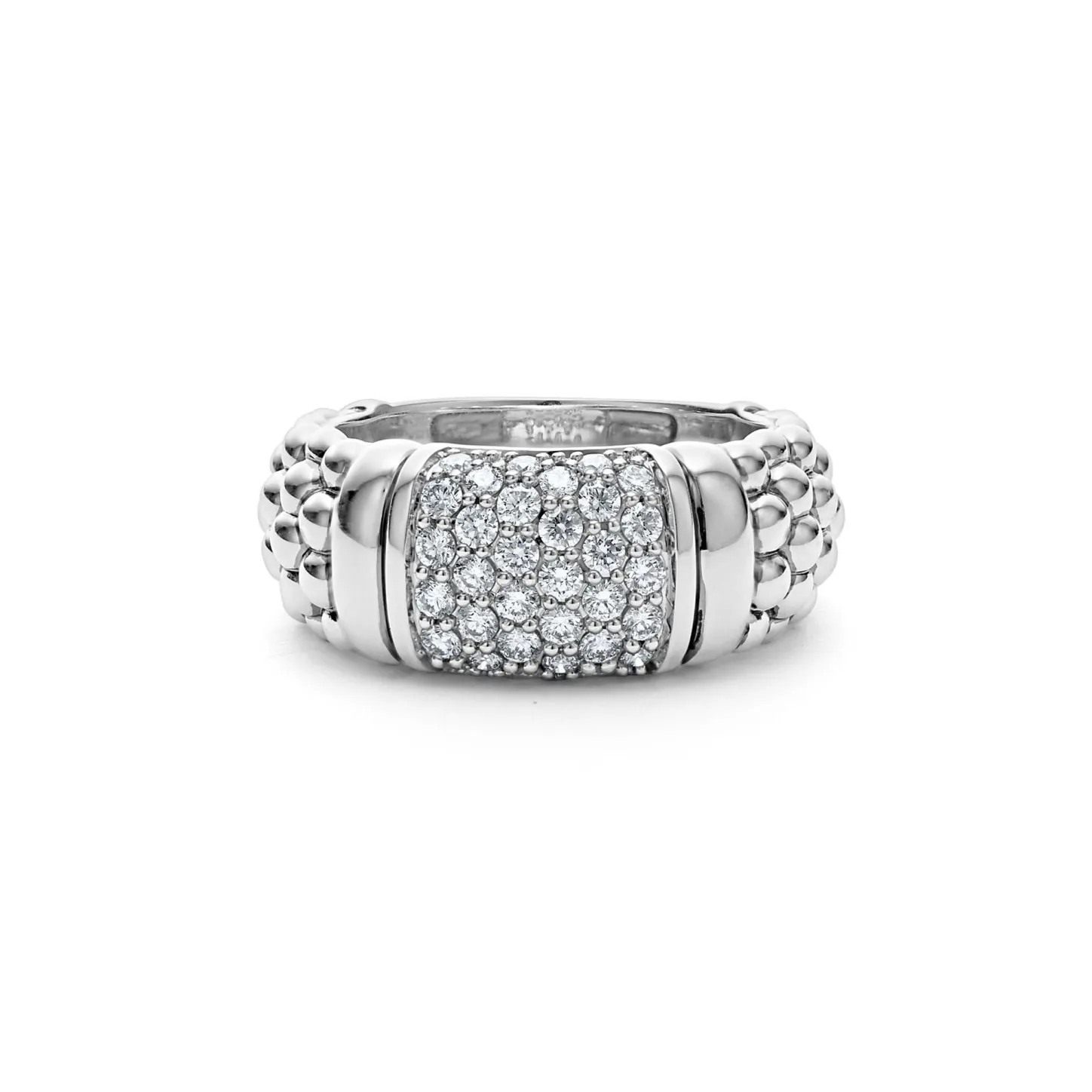 Pavé Diamonds And Sterling Silver Caviar Beading Form This Unique Band Ring. Lagos Diamonds Are The Highest Quality Natural Stones.