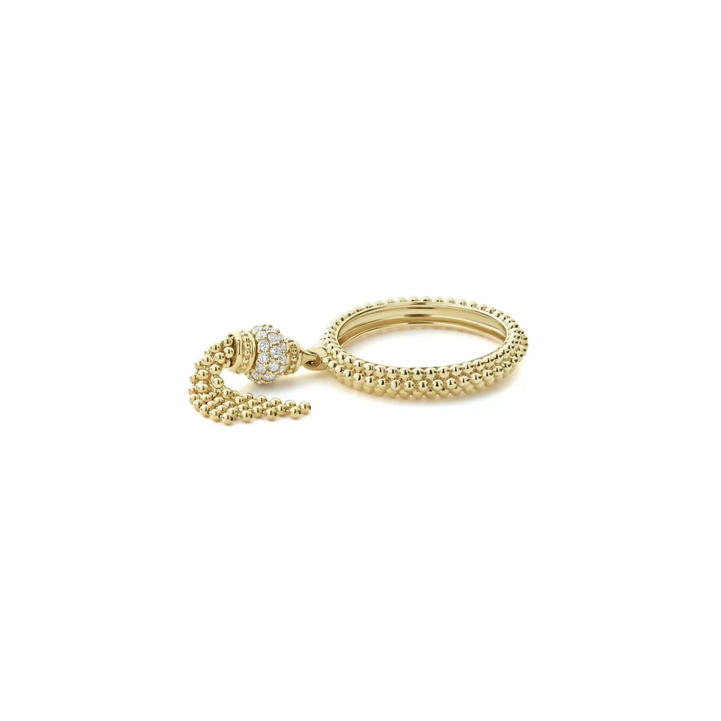 Diamonds Set With 18K Gold Form This Tassel Ring On A Caviar Band. Lagos Diamonds Are The Highest Quality Natural Stones.