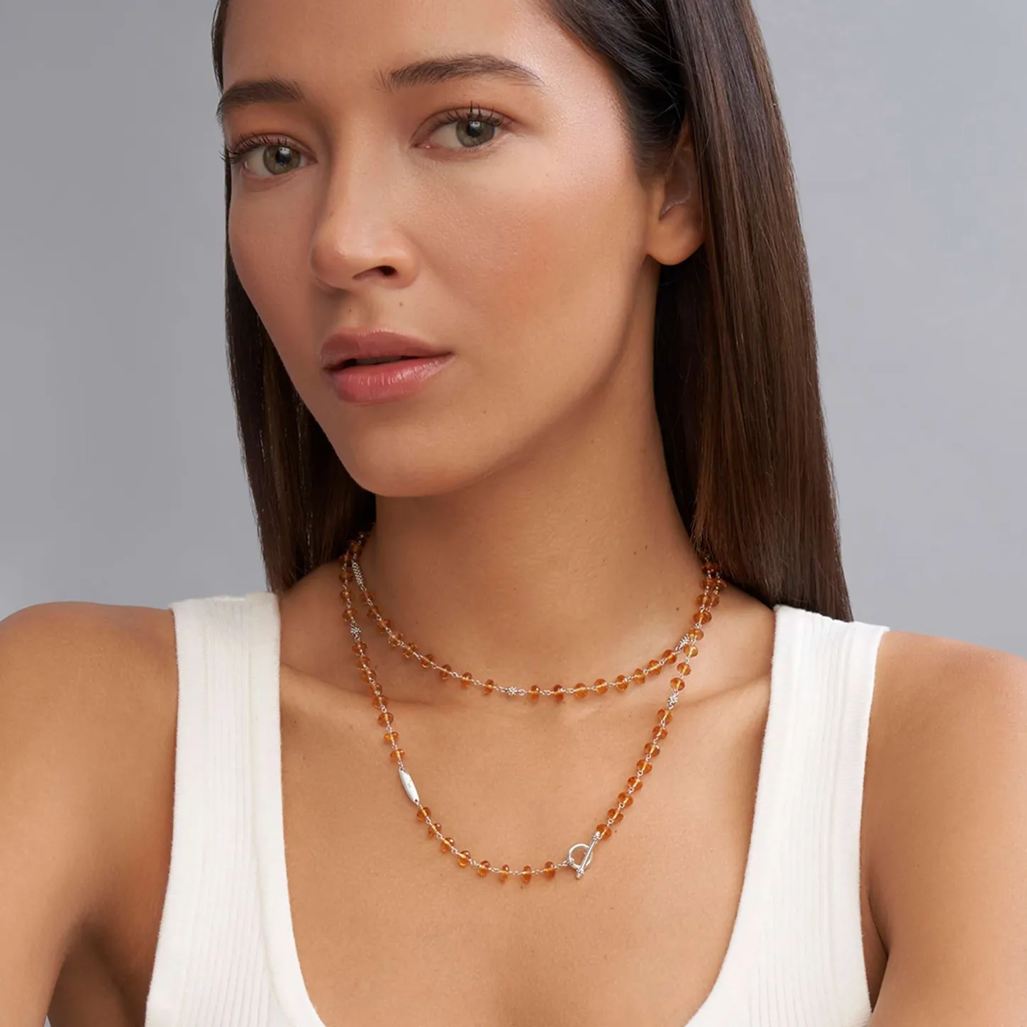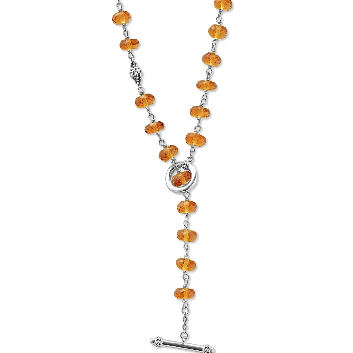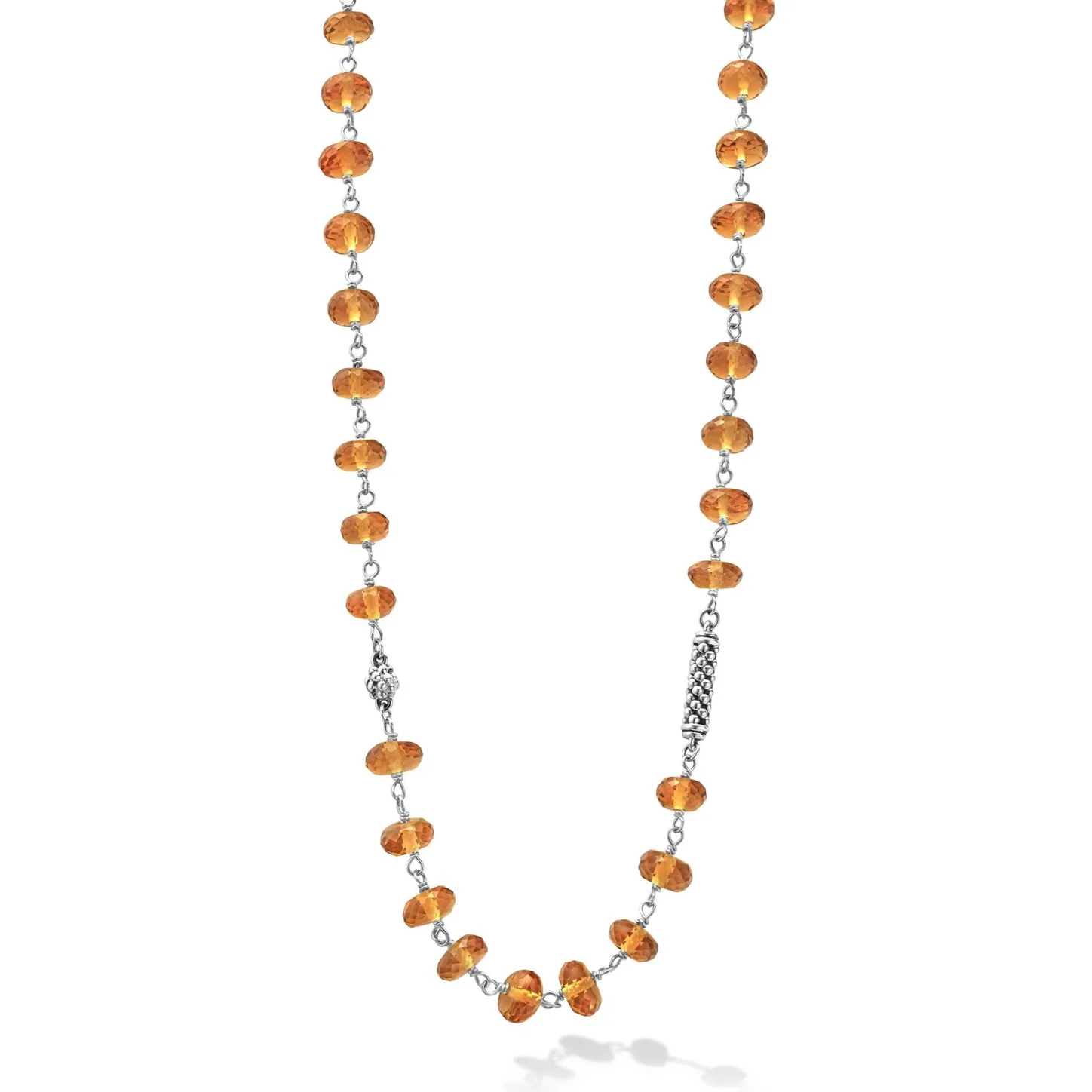 Citrine And Sterling Silver Caviar Beaded Necklace Finished With Signature Lobster Clasp.
