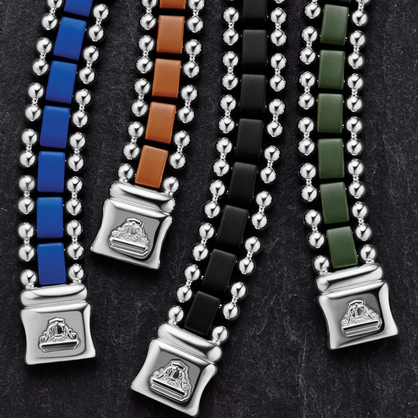 Matte Black Ceramic And Stainless Steel Form This Caviar Beaded Link Bracelet. Perfect For Everyday Wear.