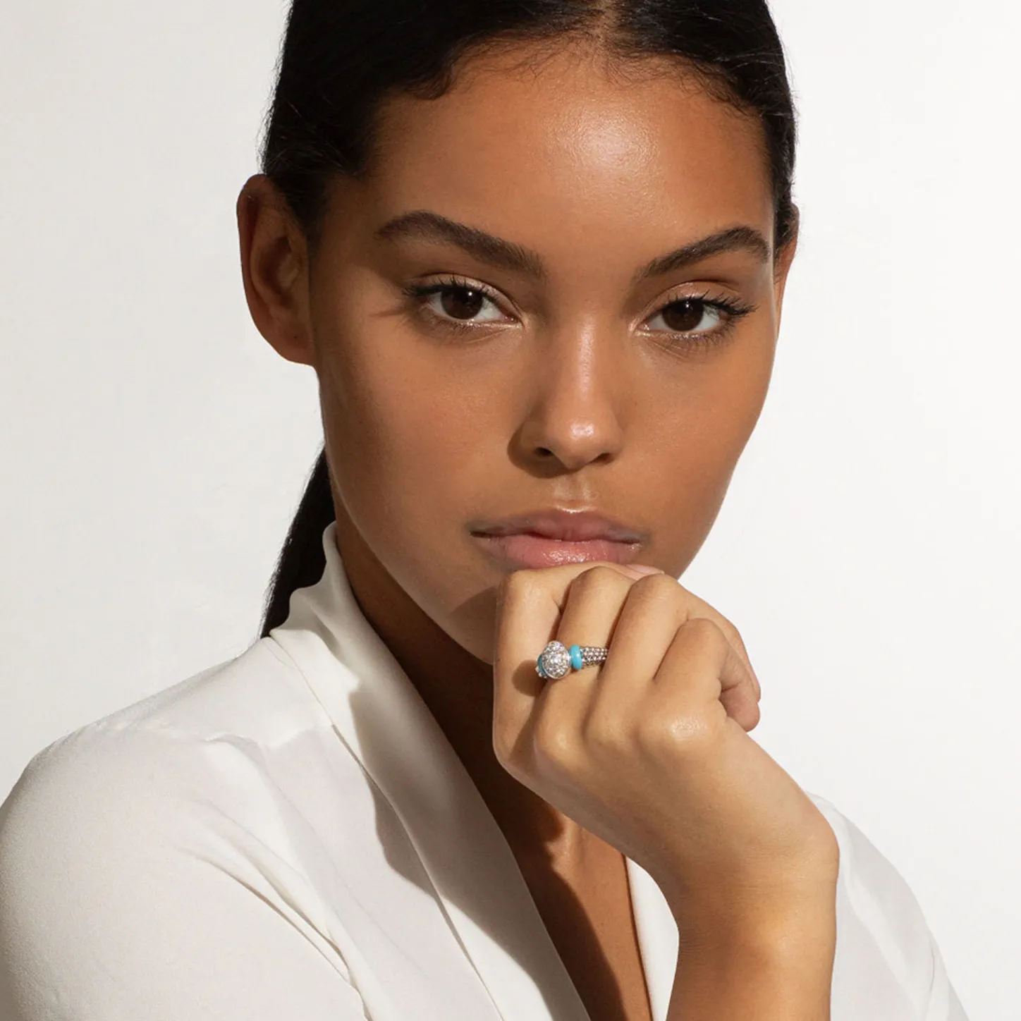 Diamonds Set In Sterling Silver Are Accented By Sleek Blue Ceramic And Caviar Beading On This Ring. Lagos Diamonds Are The Highest Quality Natural Stones.