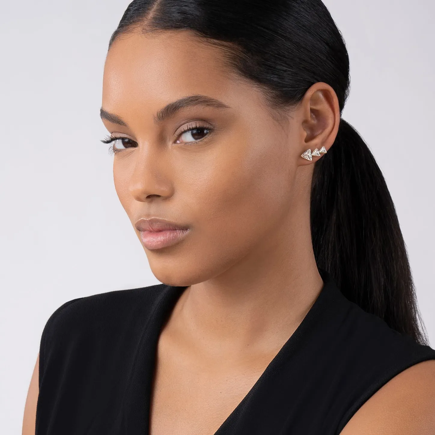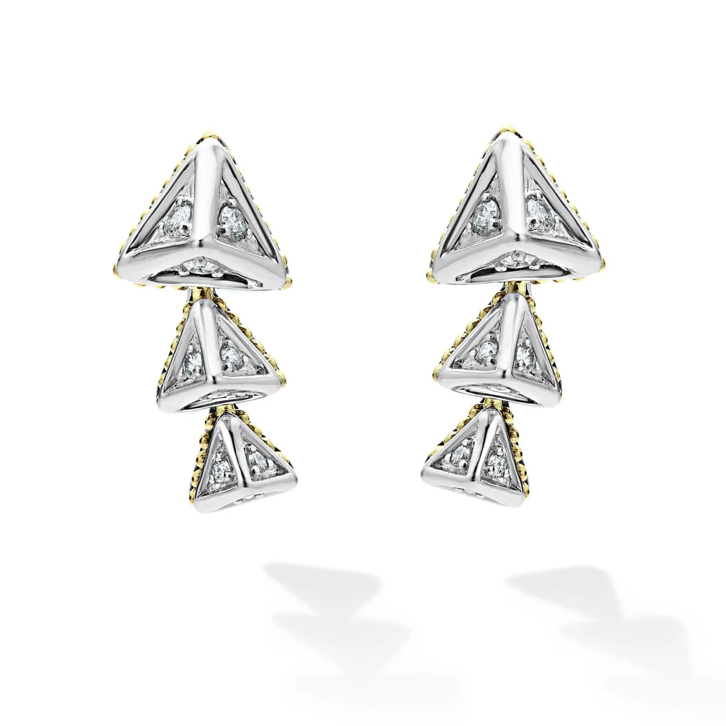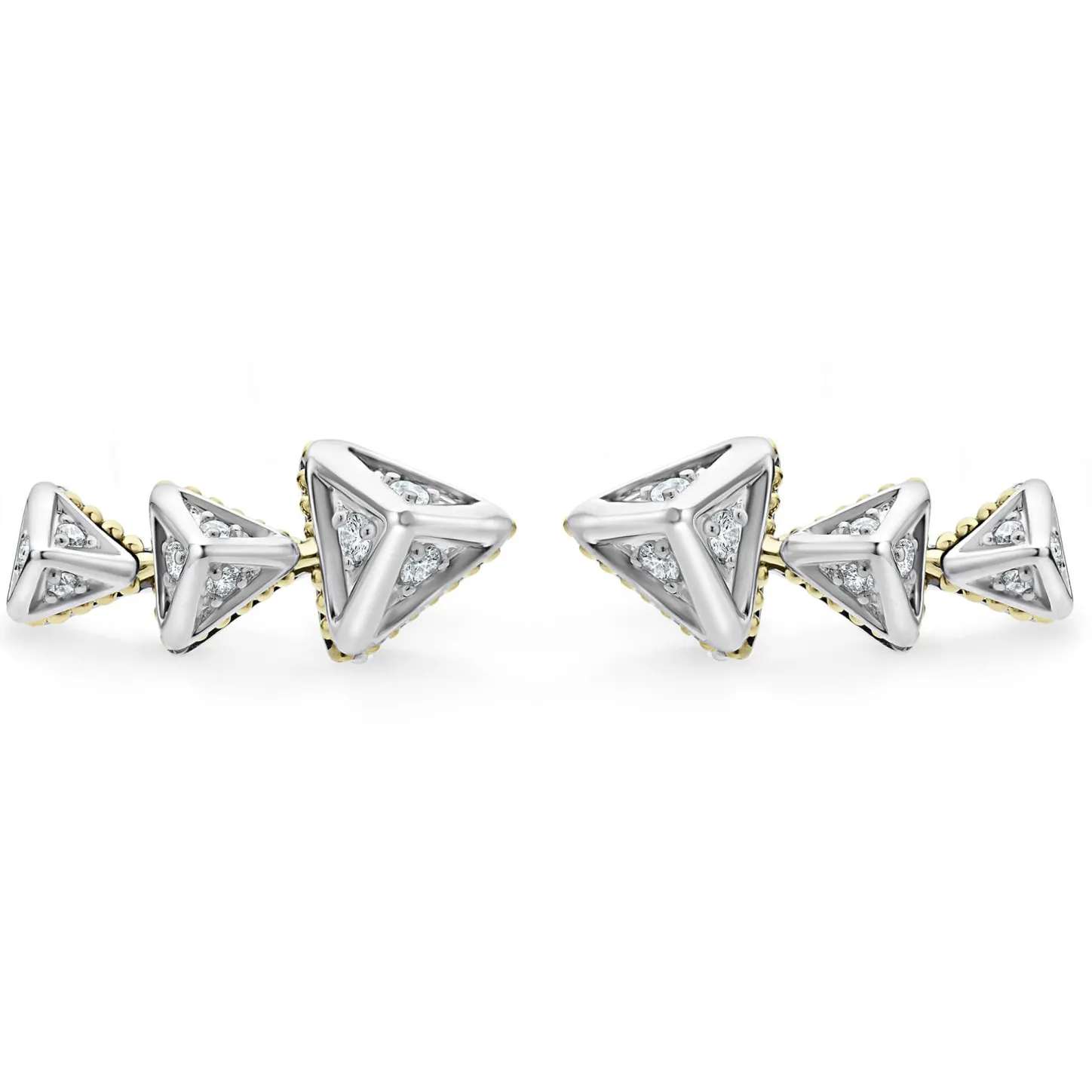 Three Diamond Pyramids Form This Crawler Earring Accented By 18K Gold Caviar Beading. Lagos Diamonds Are The Highest Quality Natural Stones.