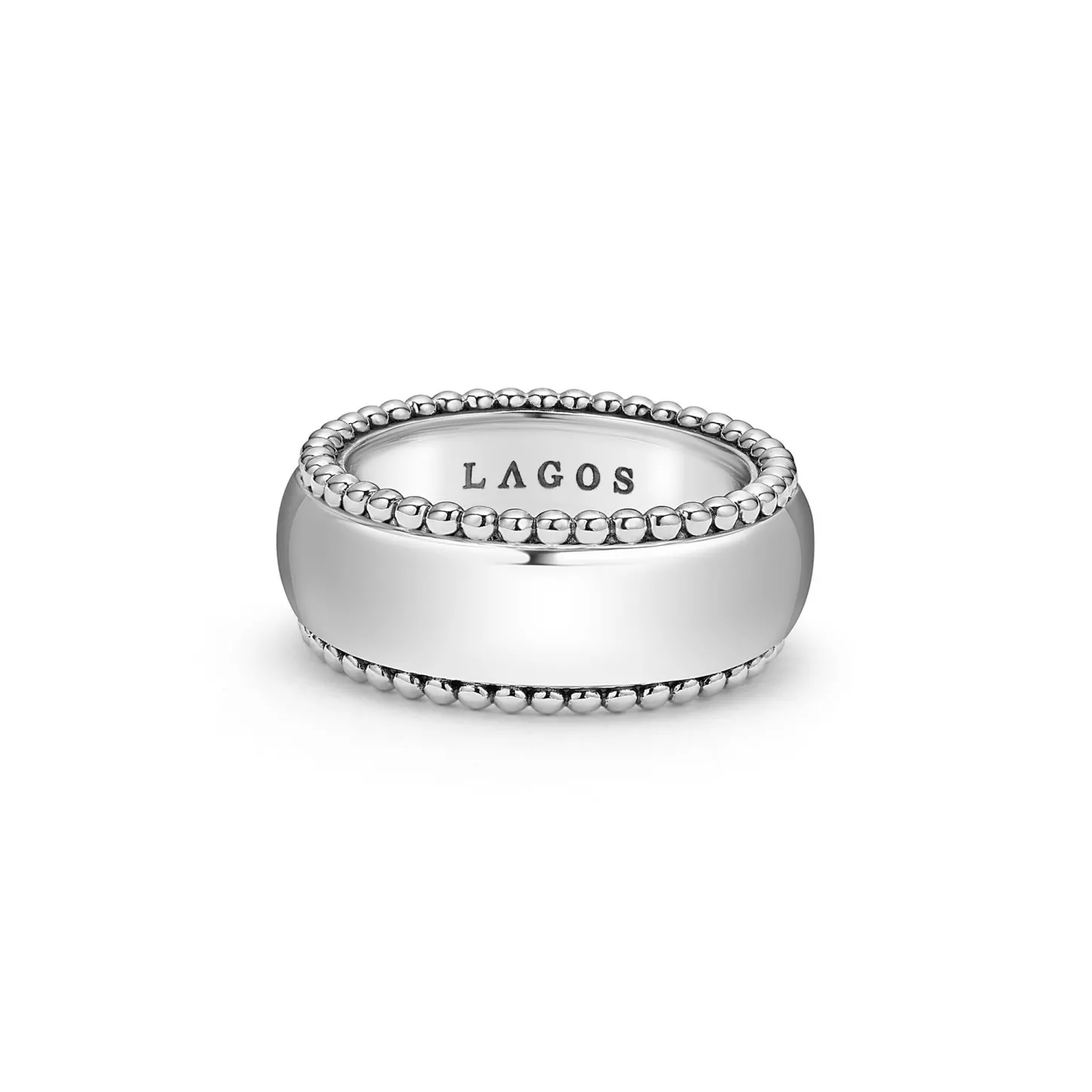 Smooth Sterling Silver And Caviar Beading Form This Classic Band Ring.