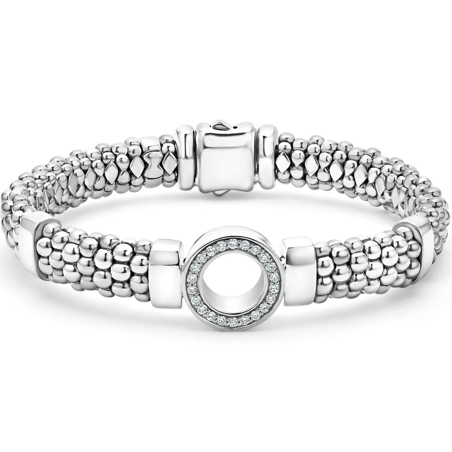 A Sterling Silver Bracelet With One Large Diamond Circle Station. Lagos Diamonds Are The Highest Quality Natural Stones.