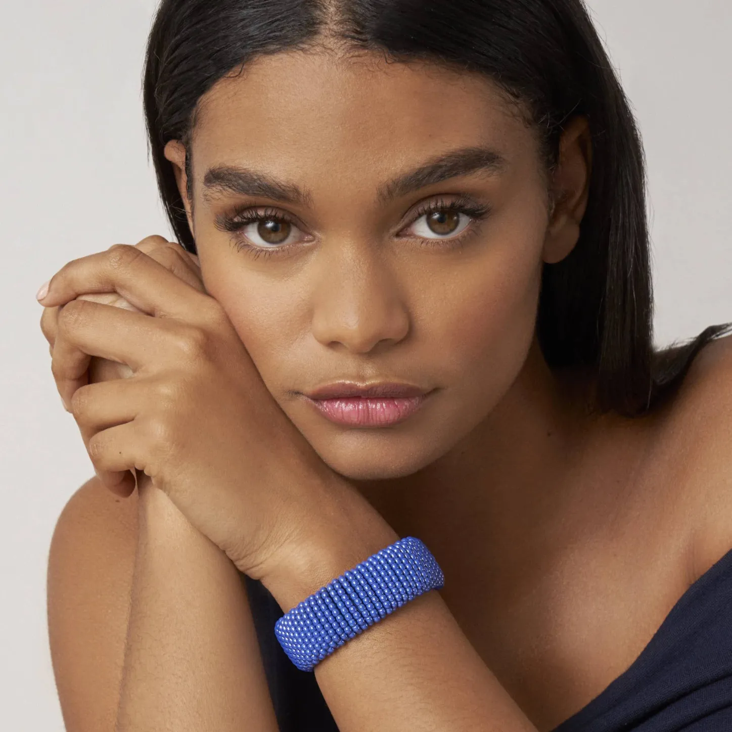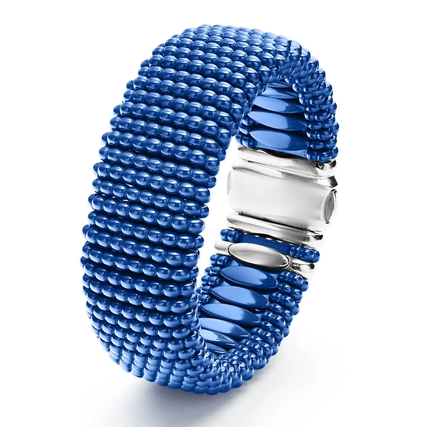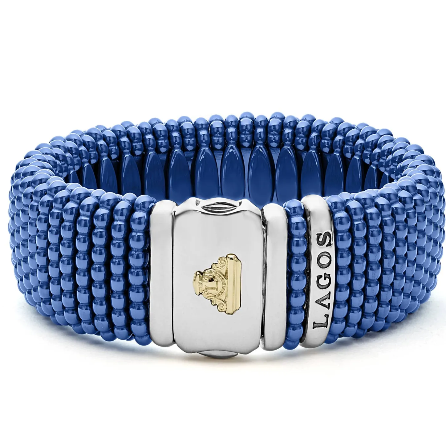 A Must-Have Lagos Design. An Ultramarine Ceramic Caviar Bracelet That Is Finished With A Sterling Silver Double-Button Box Clasp With The Lagos Crest In 18K Gold.