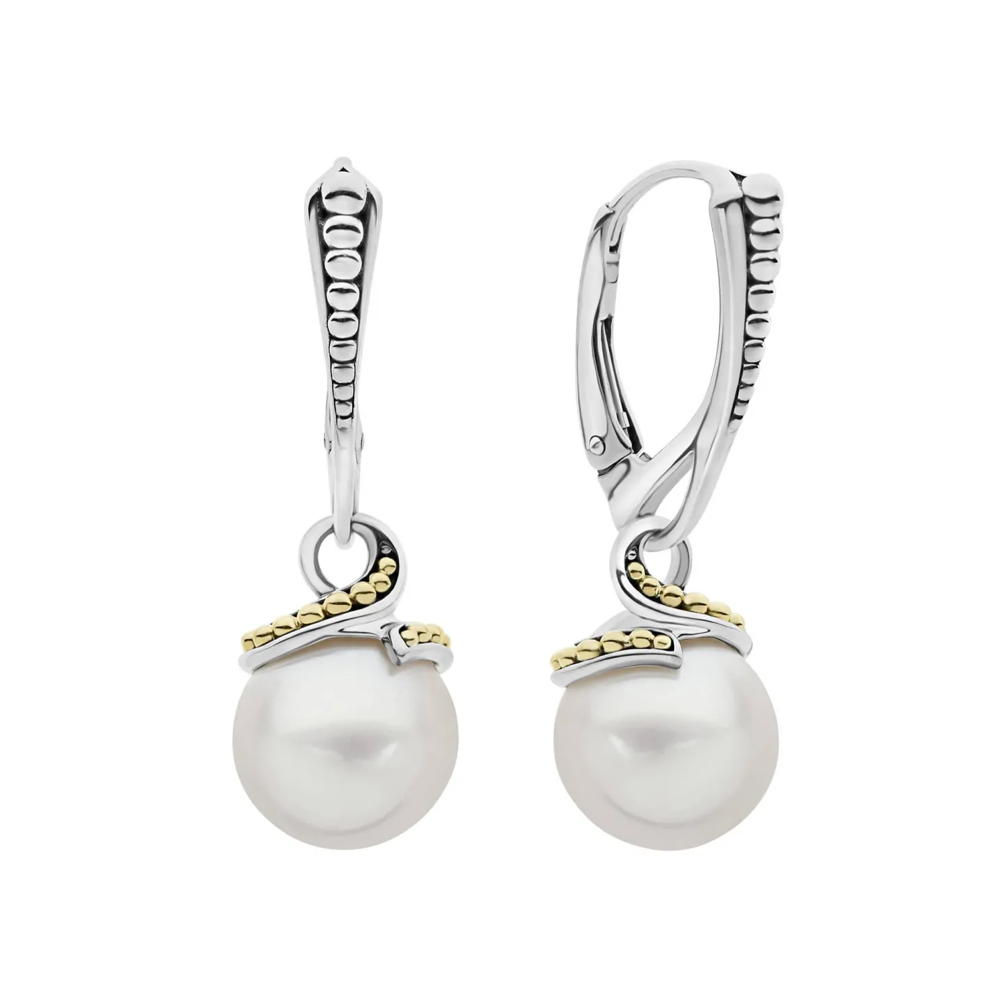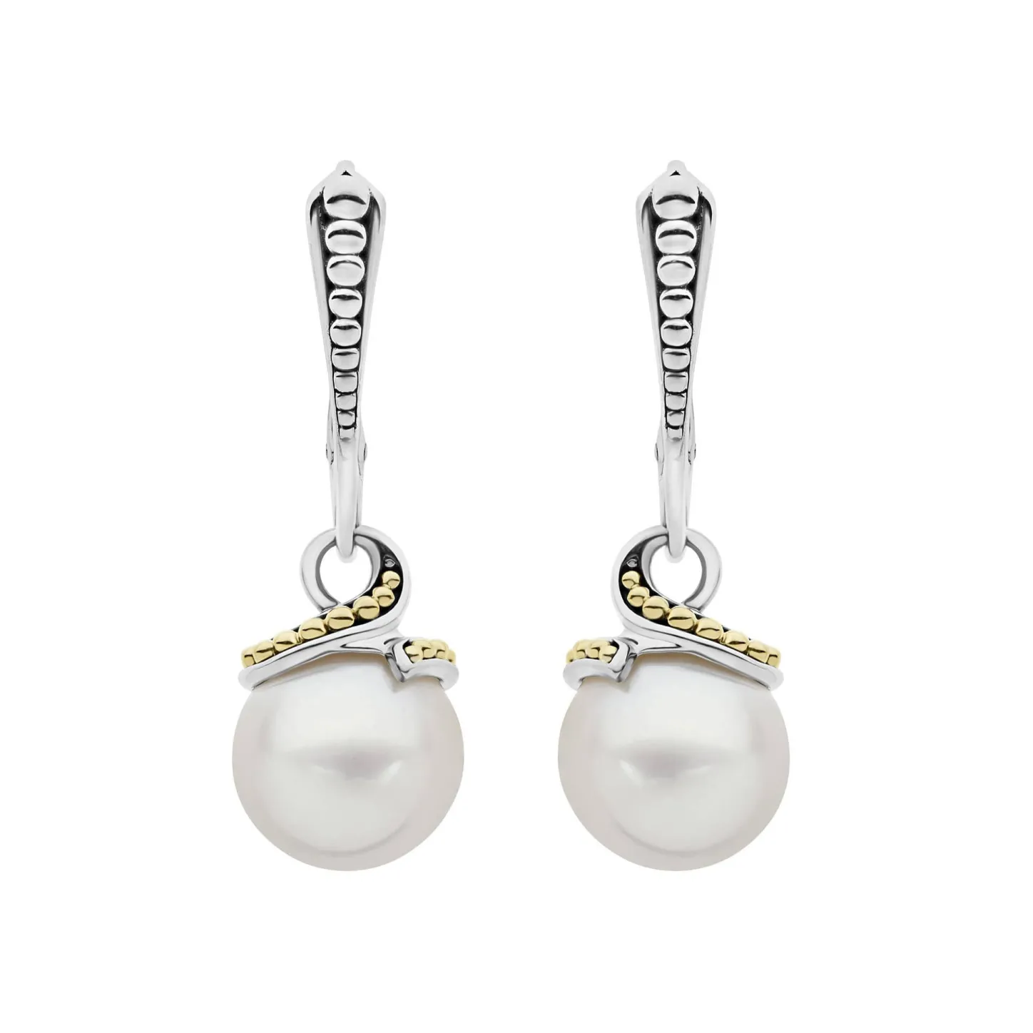 Cultured Freshwater Pearl Drop Earrings With Sterling Silver And 18K Gold Accents.