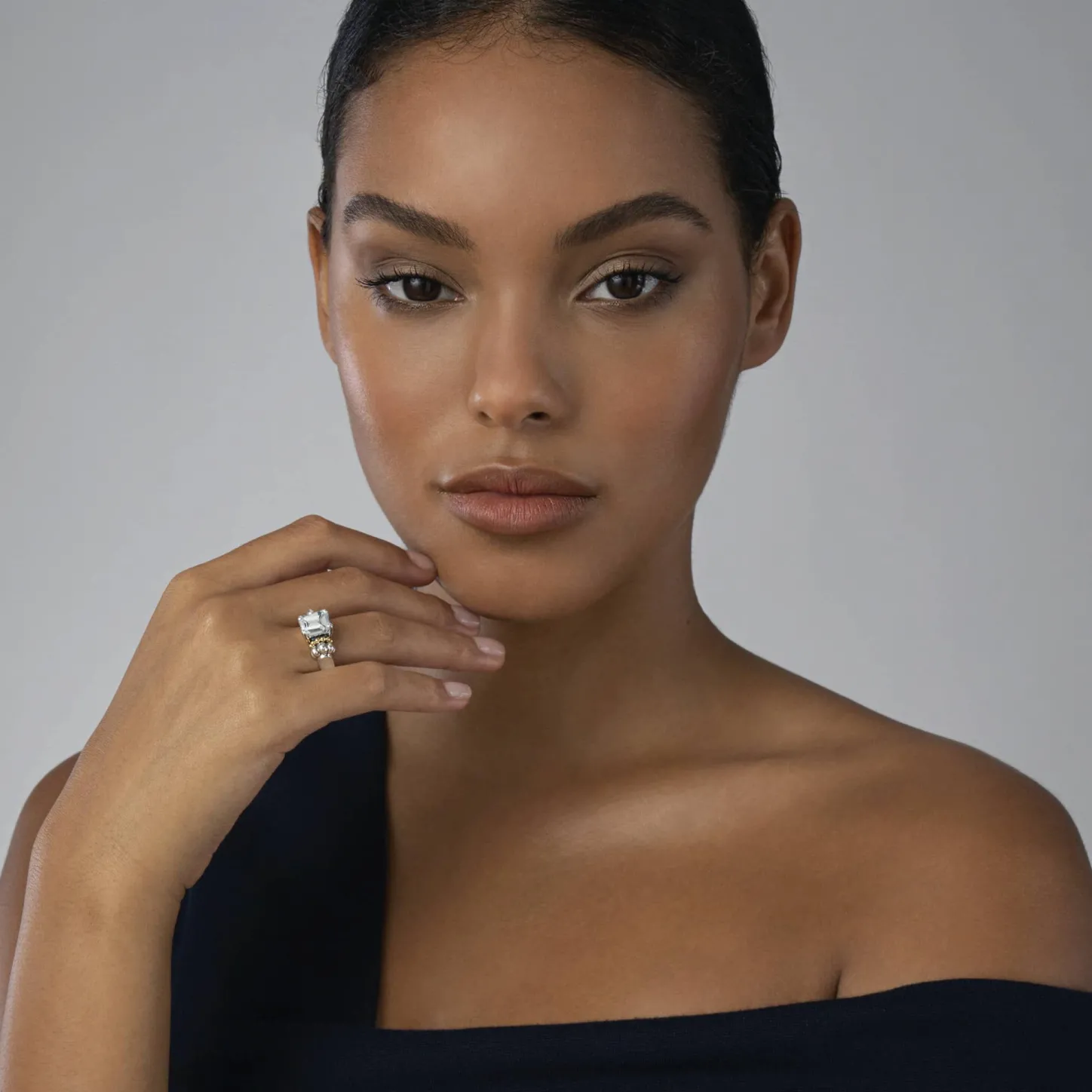 The Return Of A Lagos Icon. Our Signature Emerald-Cut White Topaz Gemstone Ring With A Prong Setting In Sterling Silver And 18K Gold Caviar Beading.