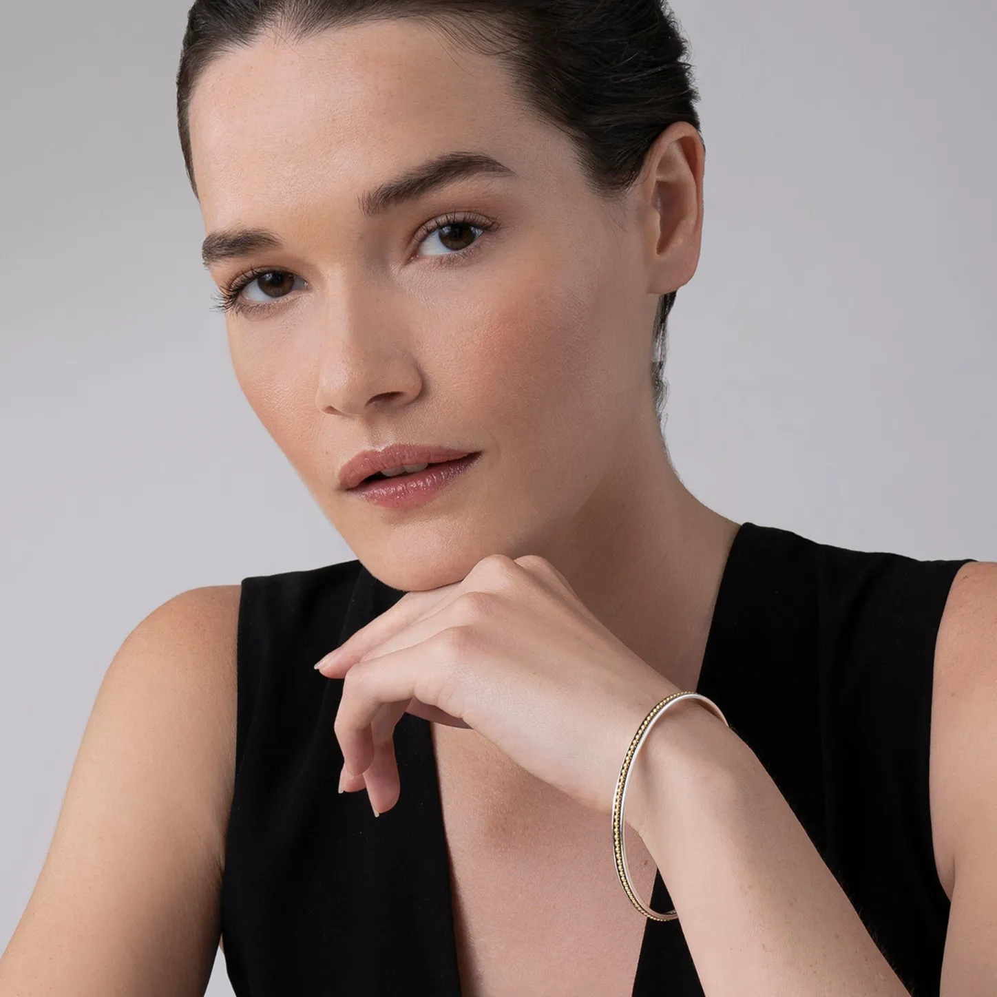 18K Gold Caviar Beads Line This Classic Sterling Silver Bangle Bracelet. Ideal For Layering With Other Bangles Or Signature Caviar Bracelets.