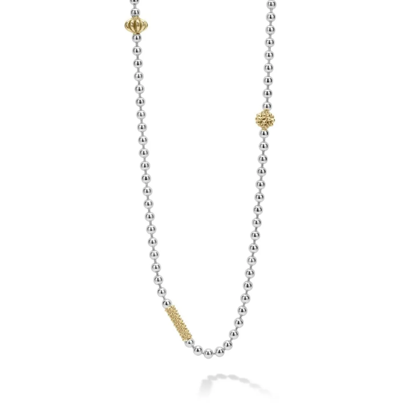 Sterling Silver Beaded Necklace Accented By 18K Gold Caviar Beading And Fluting.