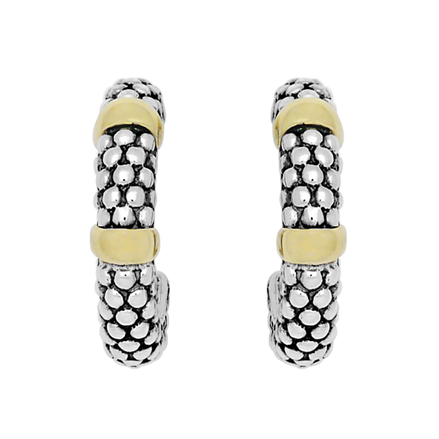 Simple, Yet Elegant Sterling Silver Caviar Beading Accented With Bands Of 18K Gold On These Versatile Hoop Earrings.