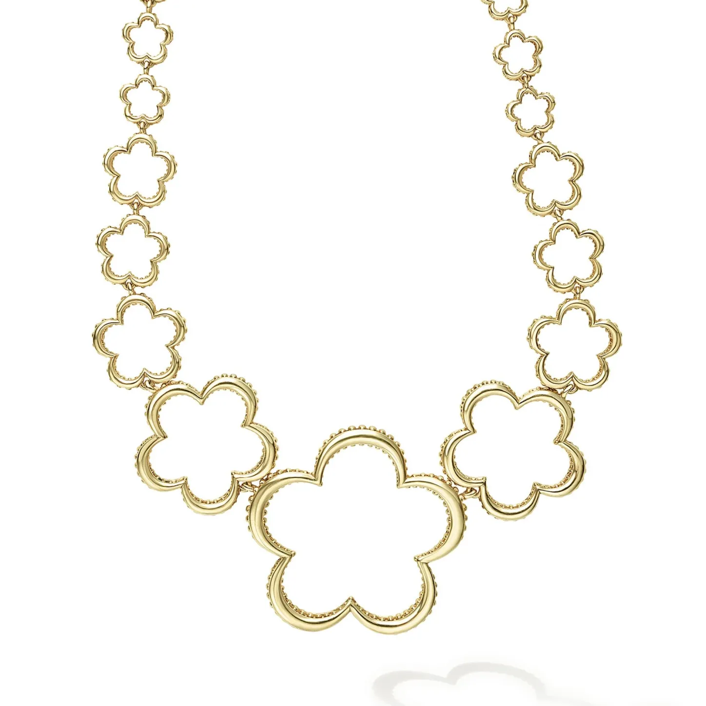 A Lagos Exclusive. 18K Gold Graduated Floral Outlines With Caviar Beading Detail On The Sides Form This 18 Inch Link Necklace.