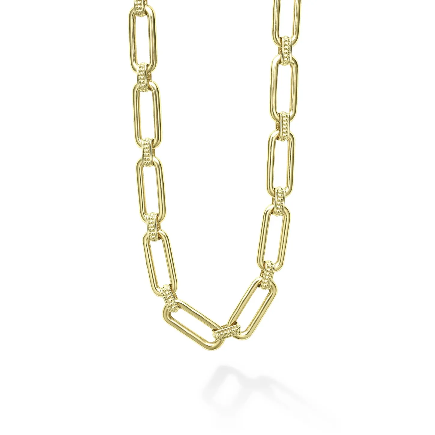 18K Gold Variations Of Caviar Beading & Fluting Elements Form This Timeless Link Necklace.