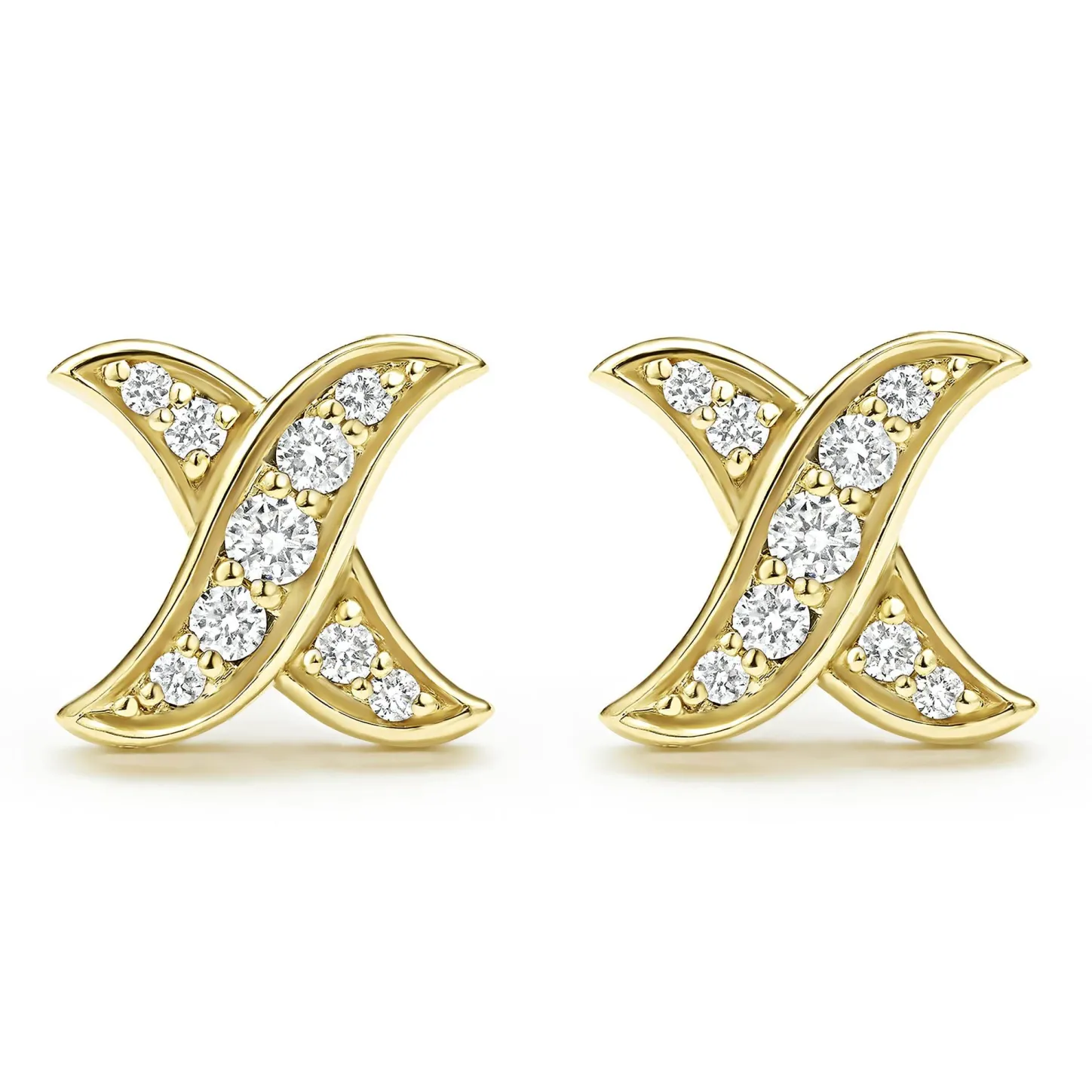 18K Gold And Diamonds Form These X Stud Earrings. Lagos Diamonds Are The Highest Natural Quality Stones.