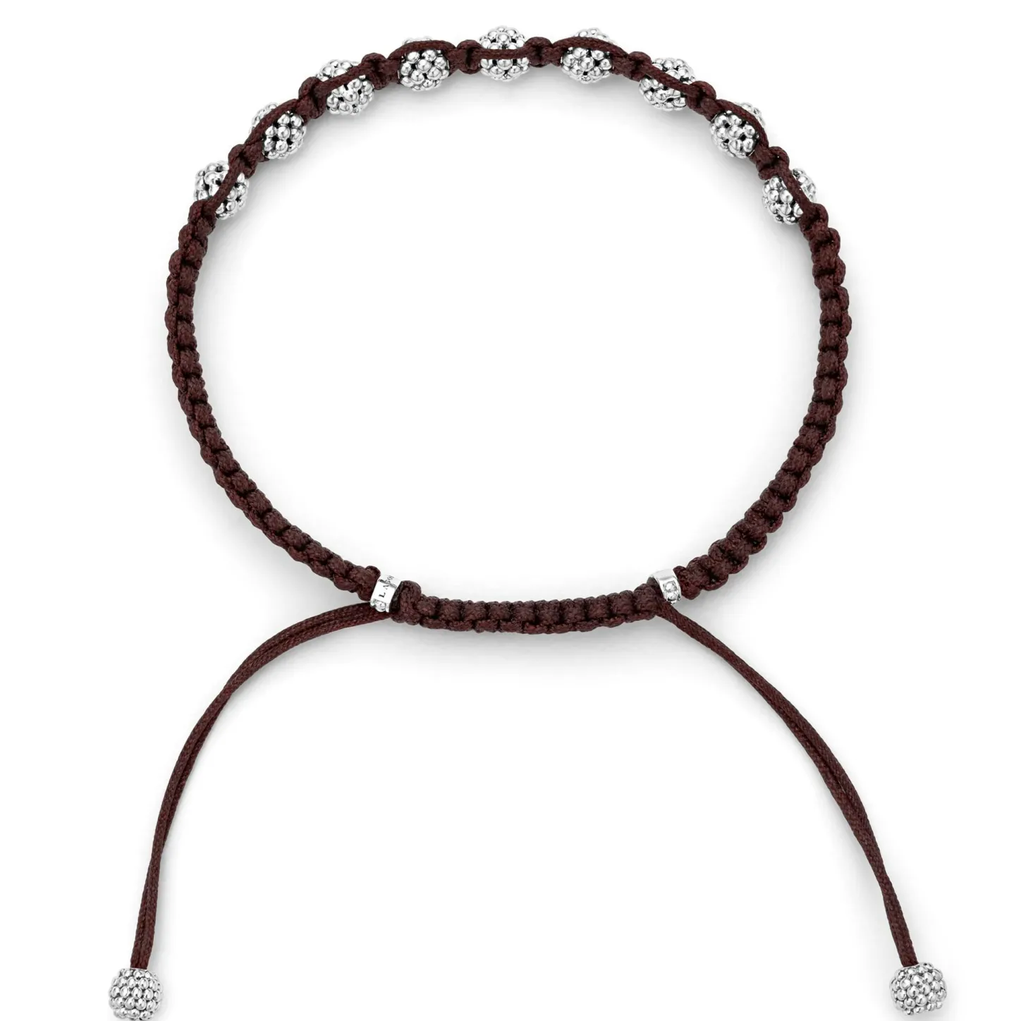 Brown Braided Nylon With Sterling Silver Caviar Beading Forms This Versatile Macrame Bracelet.