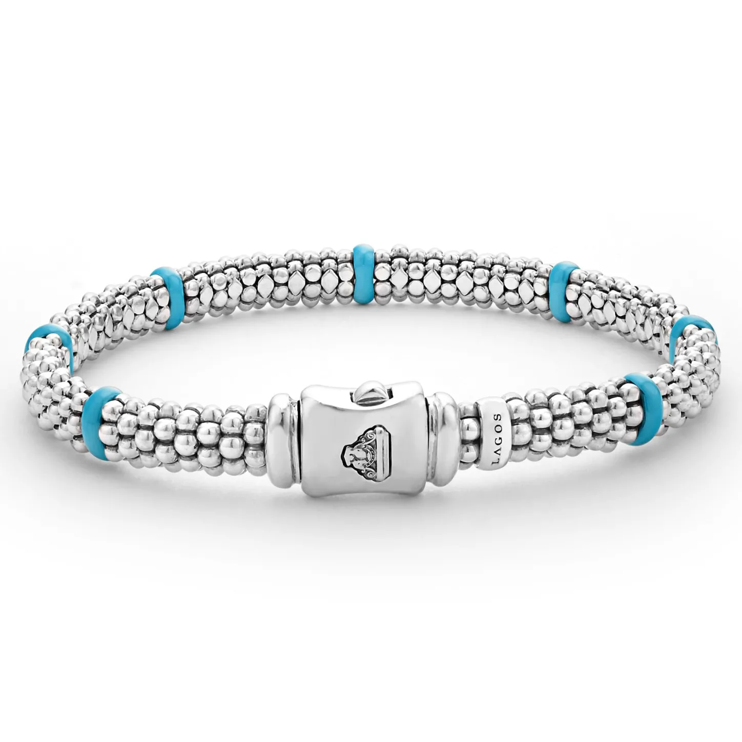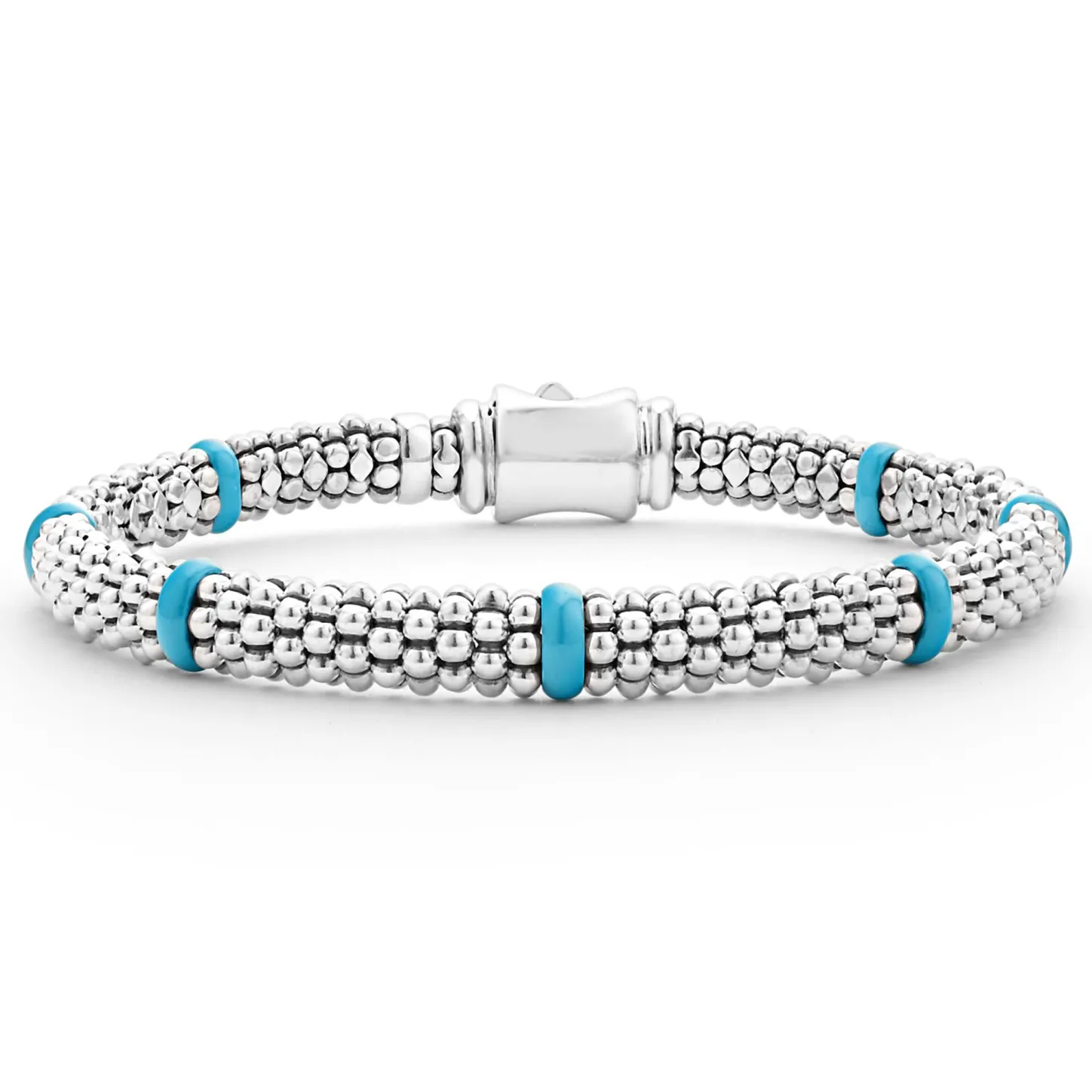 Seven Smooth Blue Ceramic Stations Highlight Sterling Silver Caviar Beading On This Signature Bracelet.