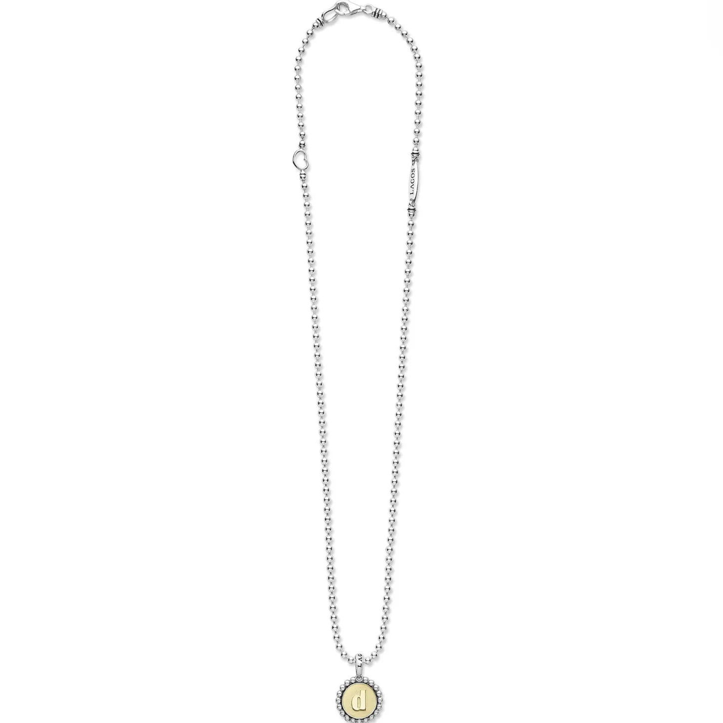 Our Signature Caviar Sterling Silver And 18K Gold Initial ‘D’ Charm Finished On A Sterling Silver Ball Chain Necklace.